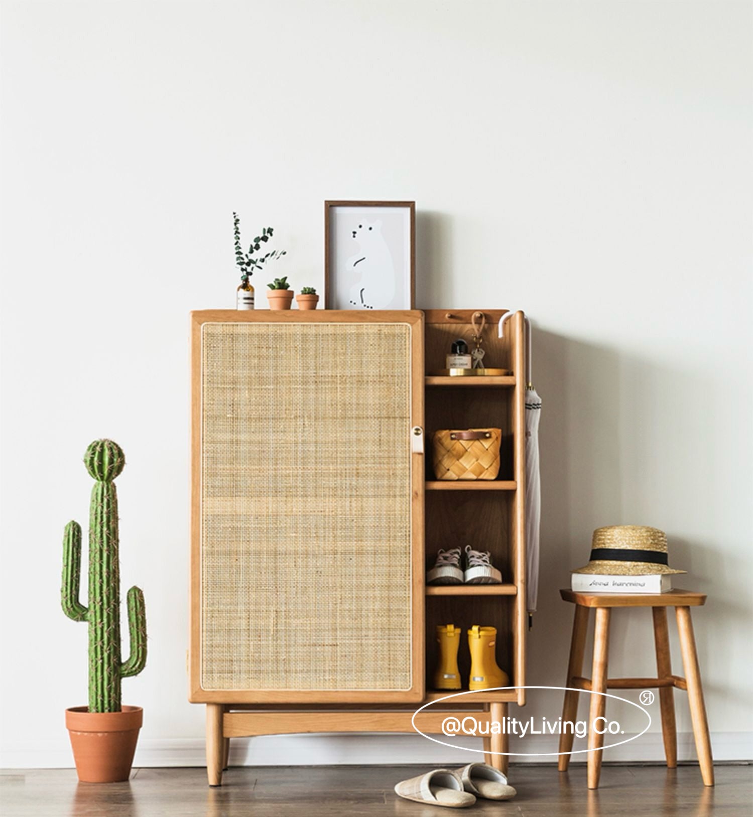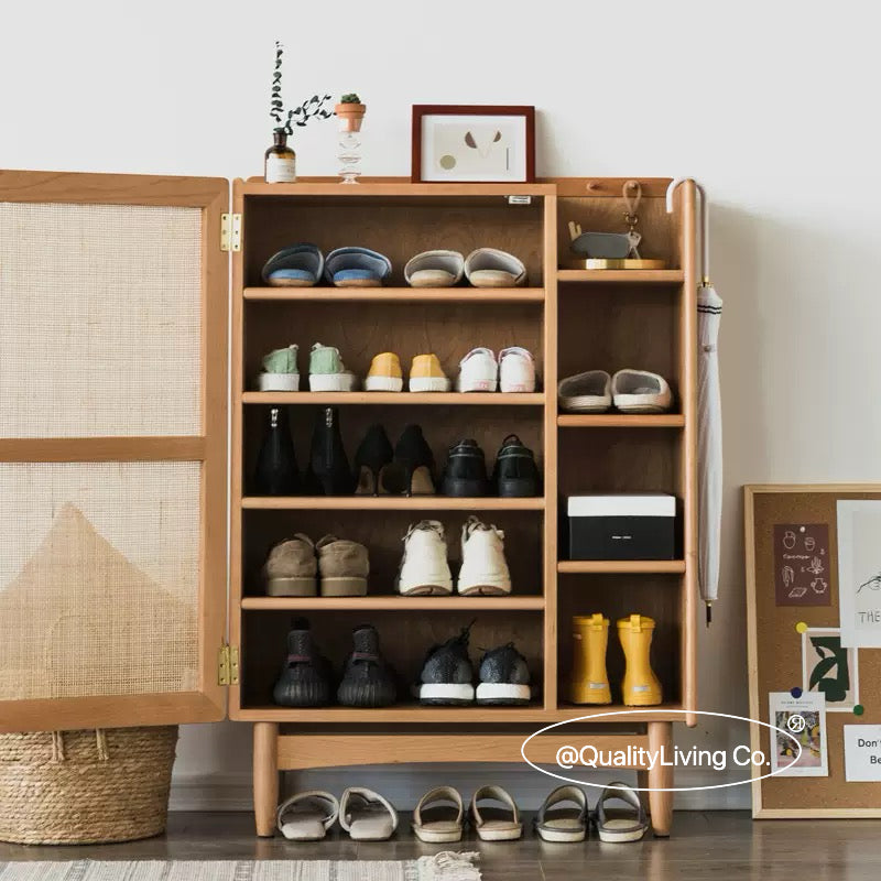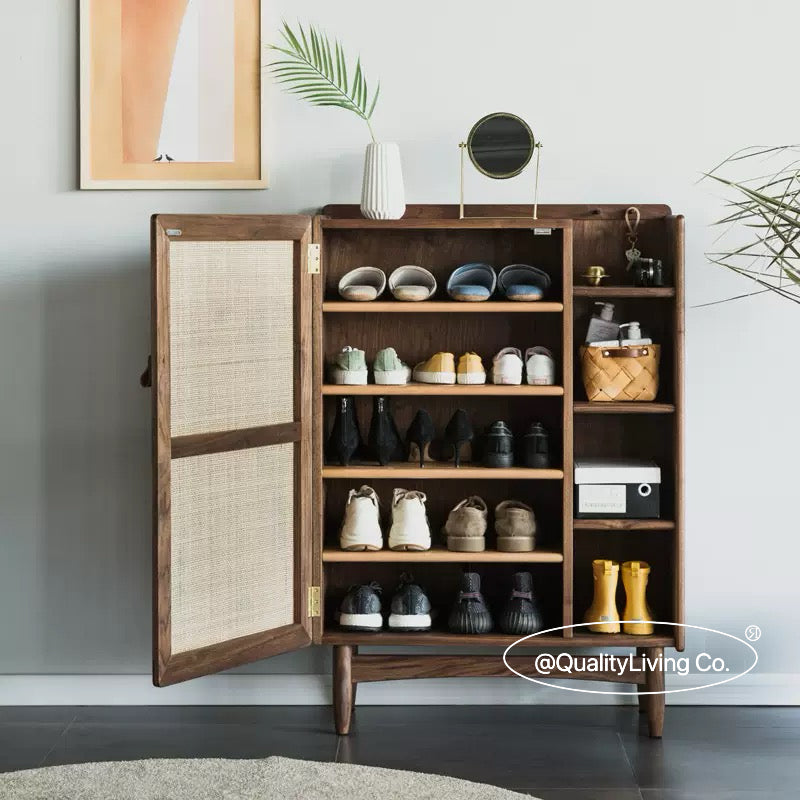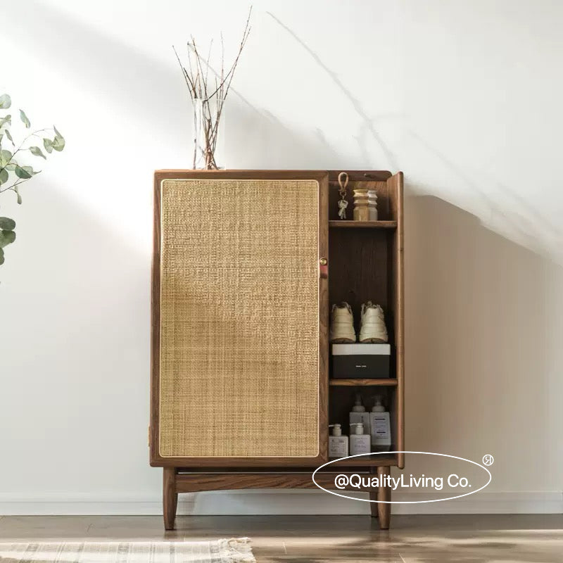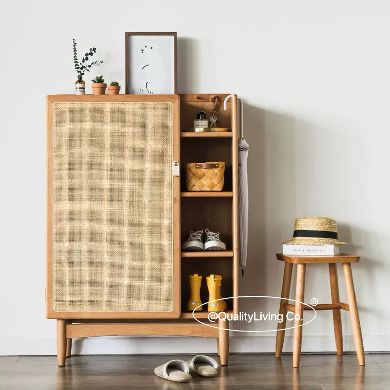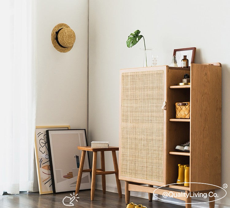 北歐實木藤編鞋櫃