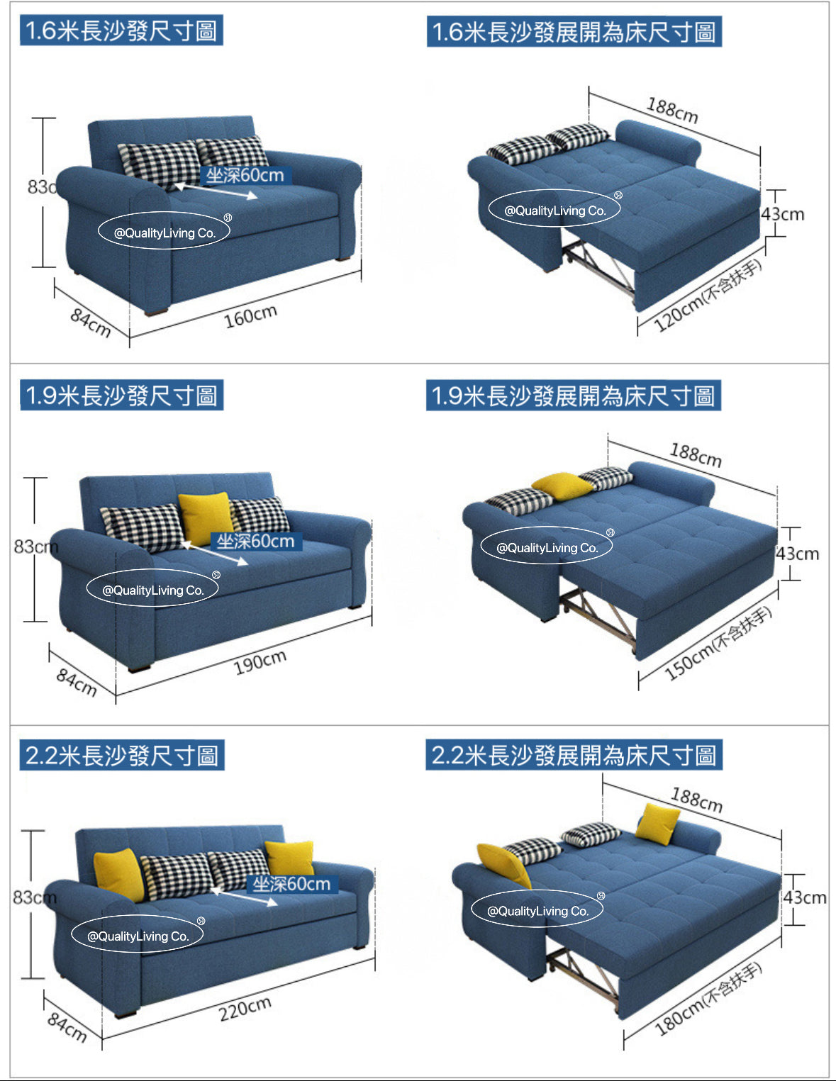 溫馨提示:沙發床為軟體傢具,尺寸為人工測量,可能存在1~5cm誤差屬正常現象。