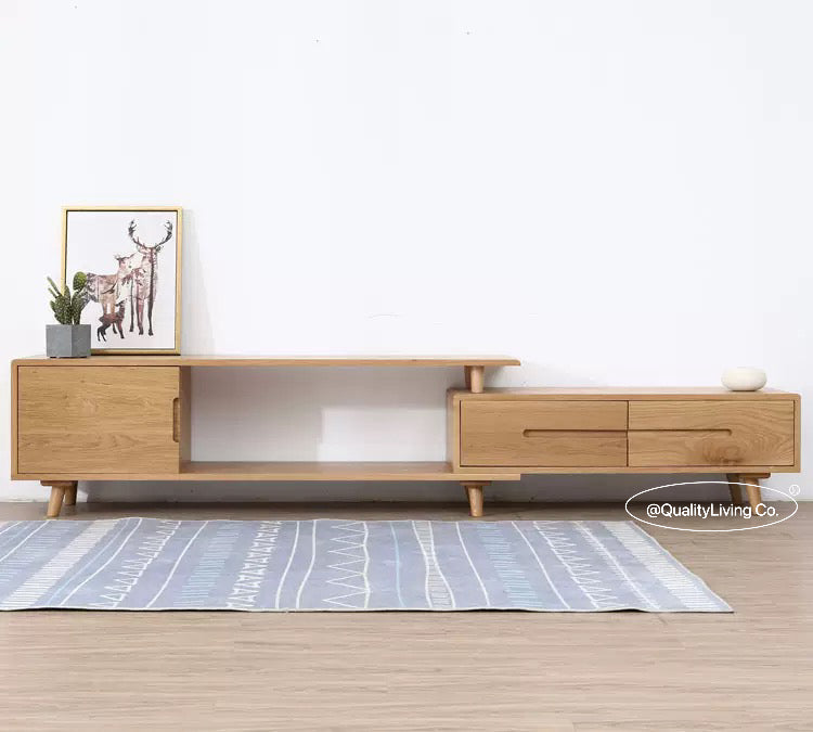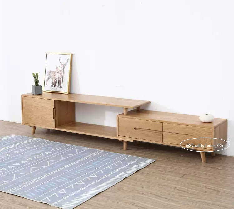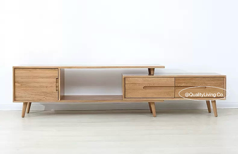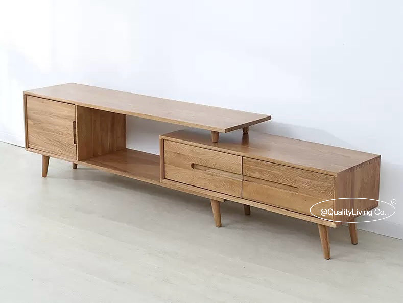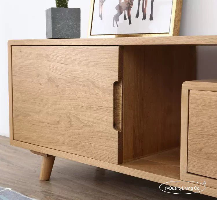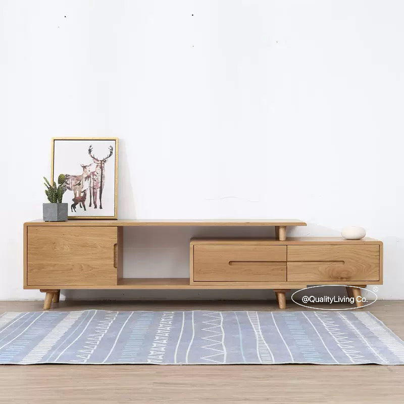 特點:這款產品選用了北美進口的紅橡木作為材料,提供了豐富的收納空間。拉開後,中間部分可作為開放式儲物區域。此外,抽屜使用實木滑軌,取代了傳統的滑軌設計。