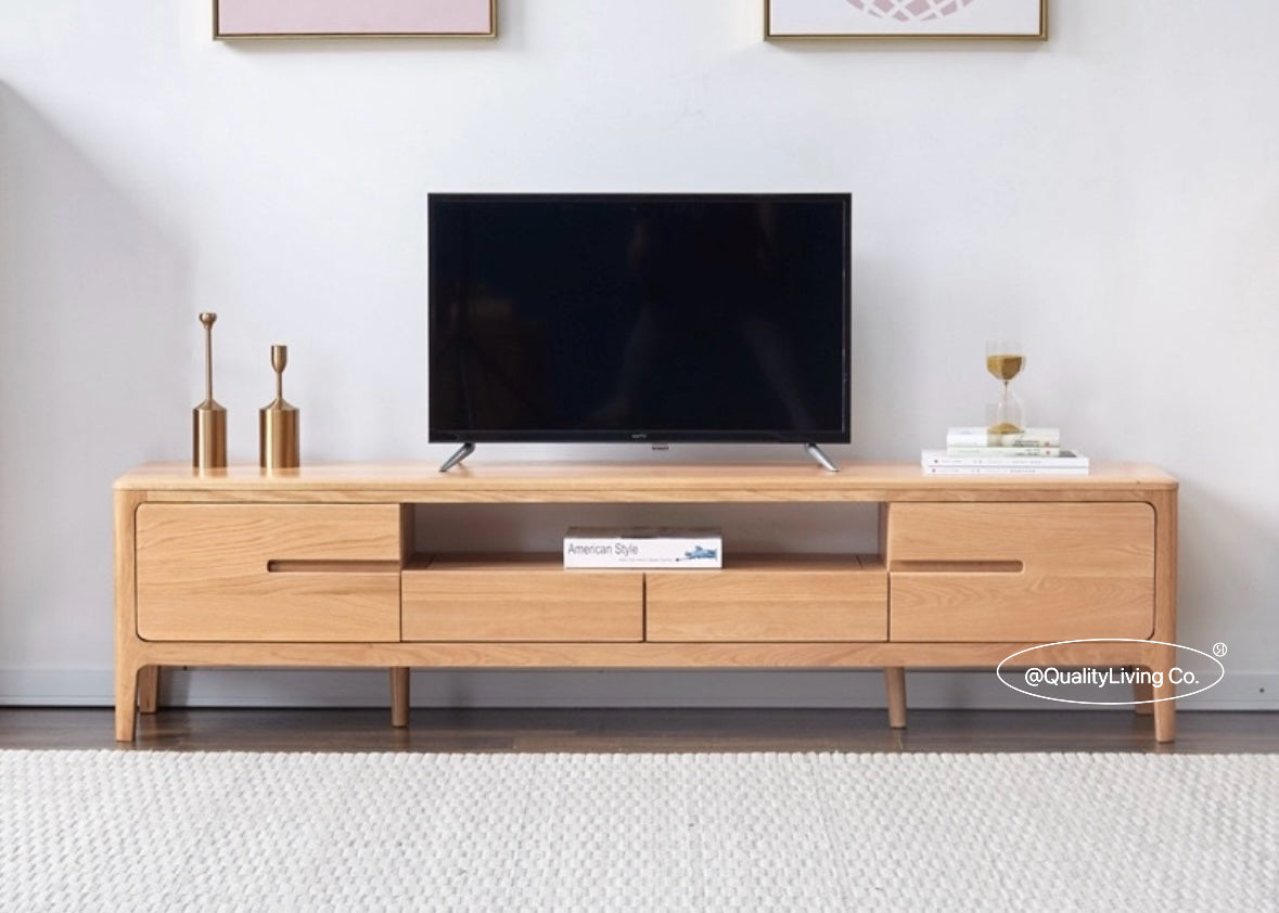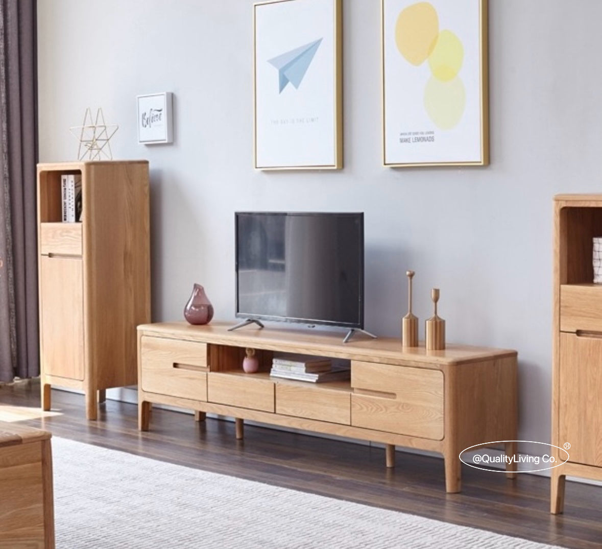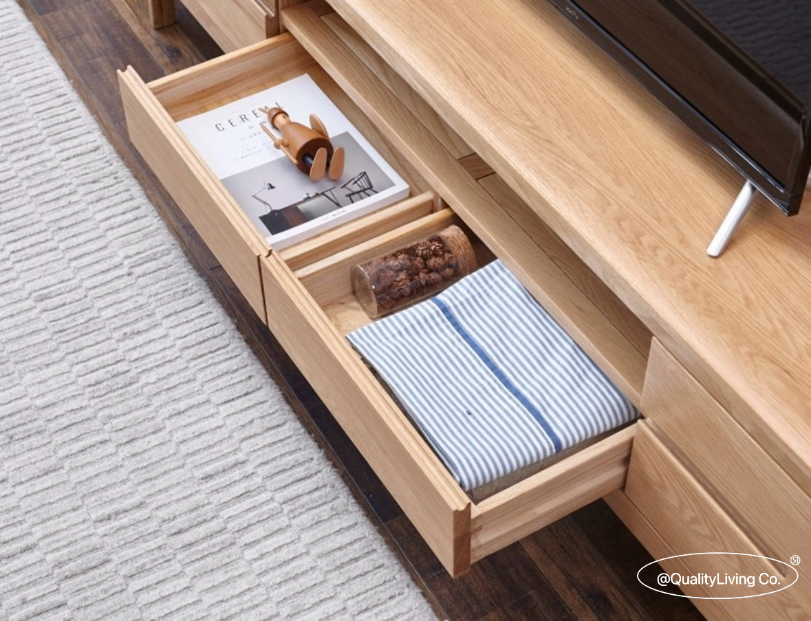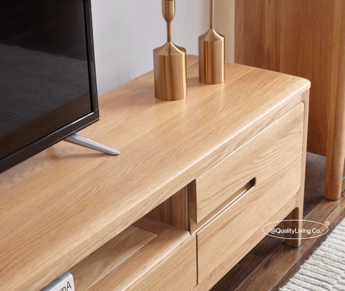 特點:選用北美進口紅橡木製作。這款電視櫃融合了現代設計與優質材料,特別設計的圓角處理,營造出溫暖舒適的居家氛圍。採用實木導軌,操作靈活流暢,提升耐用性,使用更便利。