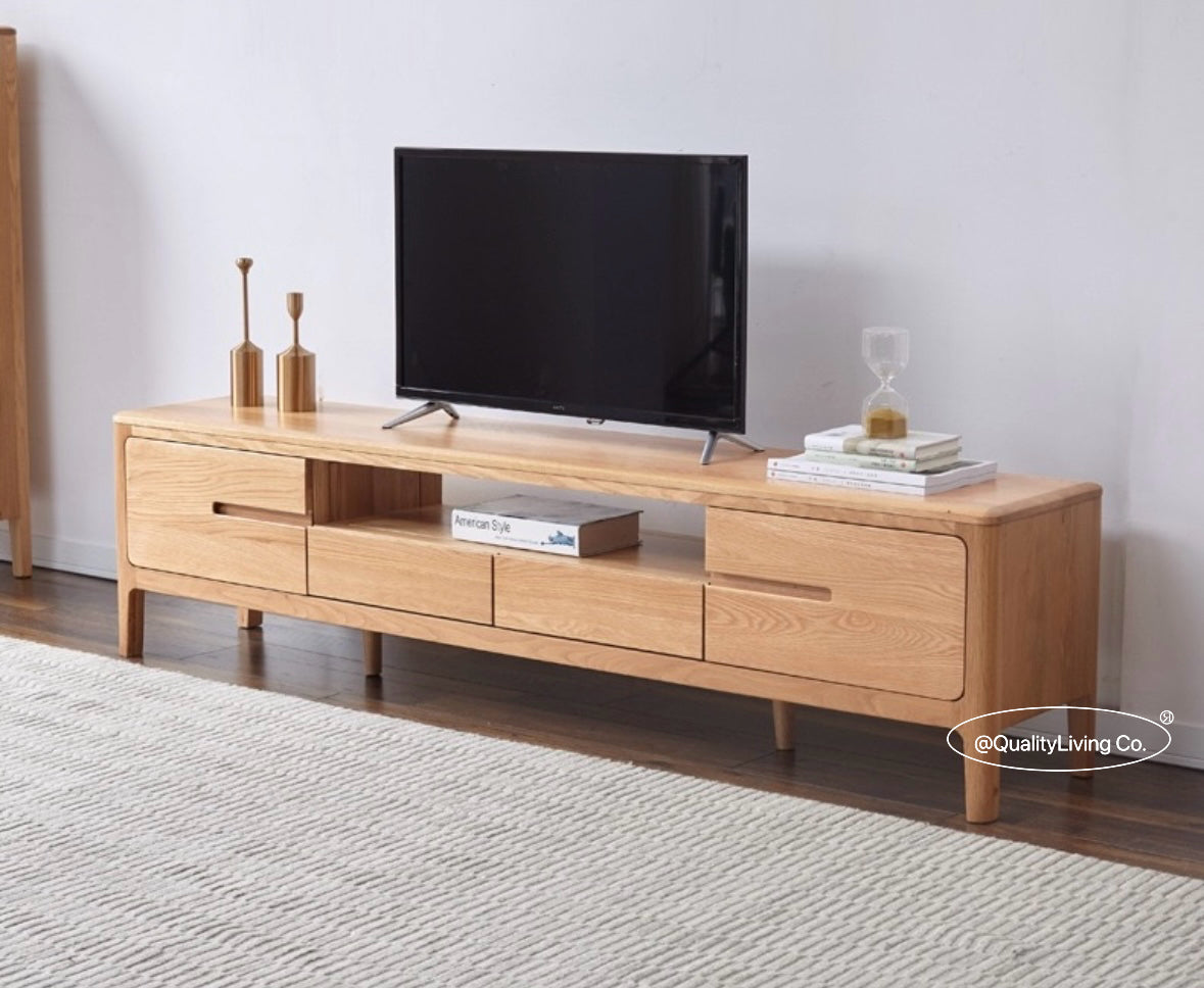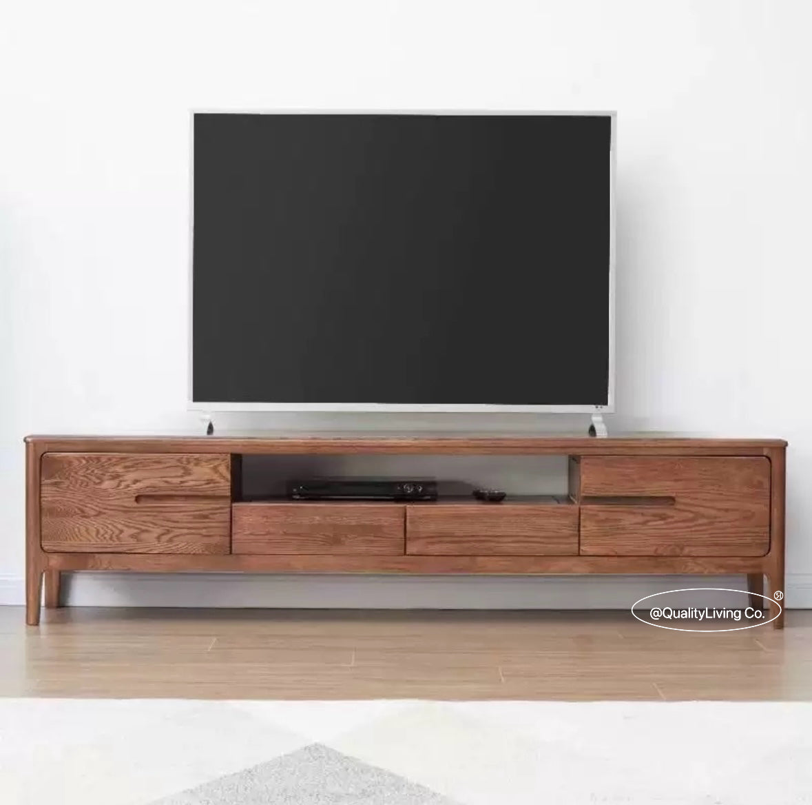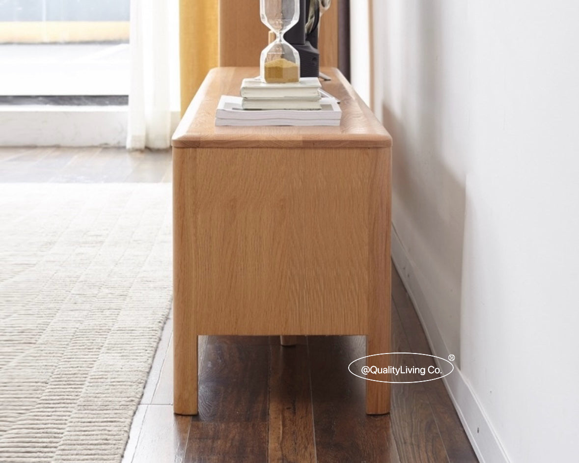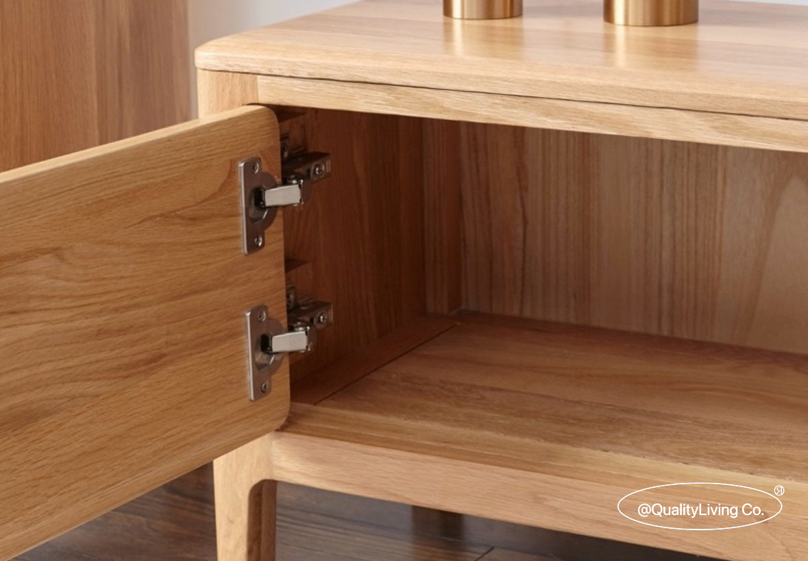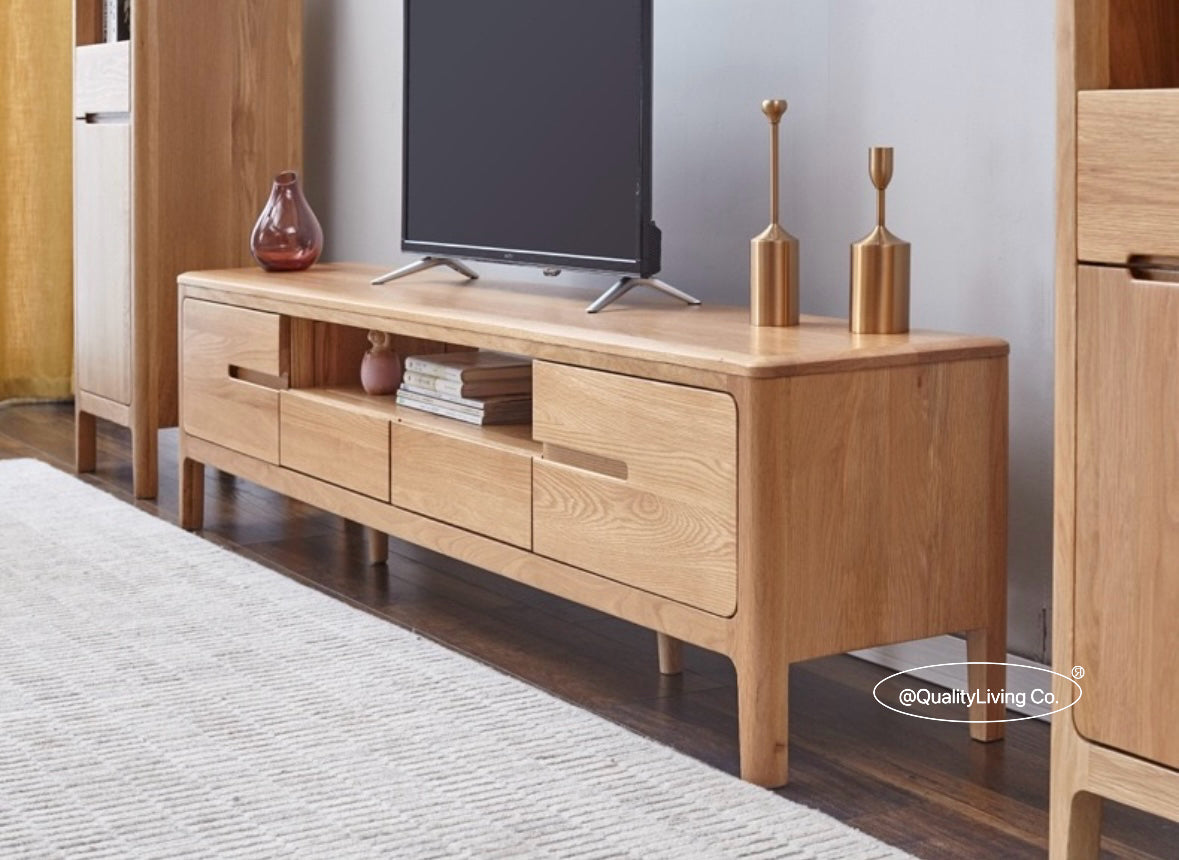 特點:選用北美進口紅橡木製作。這款電視櫃融合了現代設計與優質材料,特別設計的圓角處理,營造出溫暖舒適的居家氛圍。採用實木導軌,操作靈活流暢,提升耐用性,使用更便利。