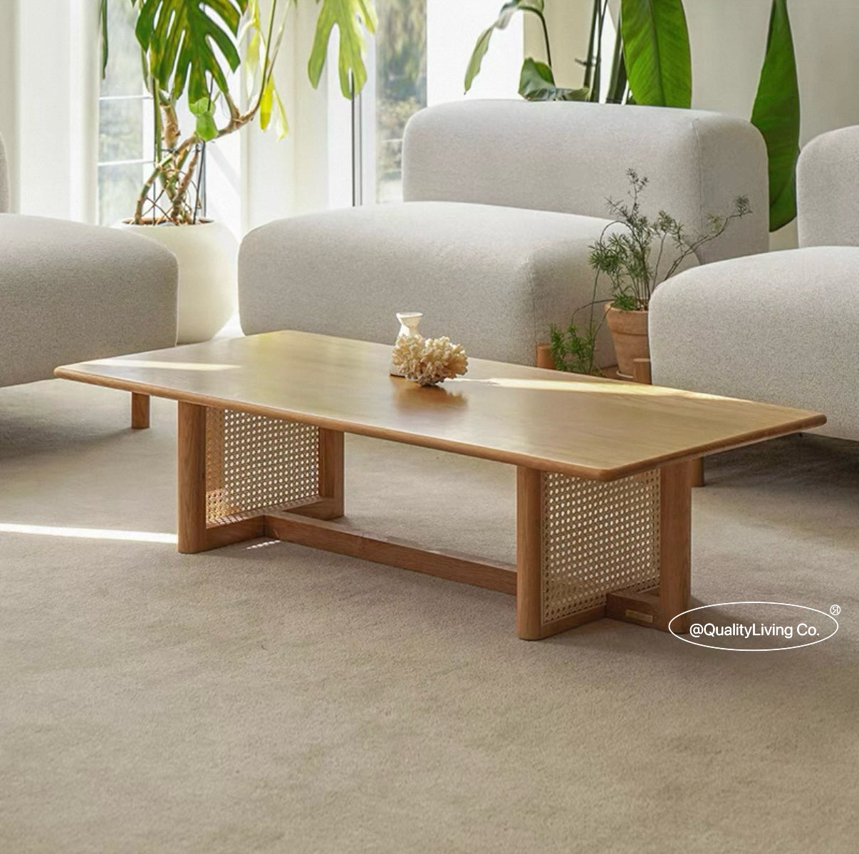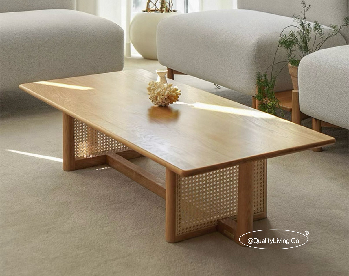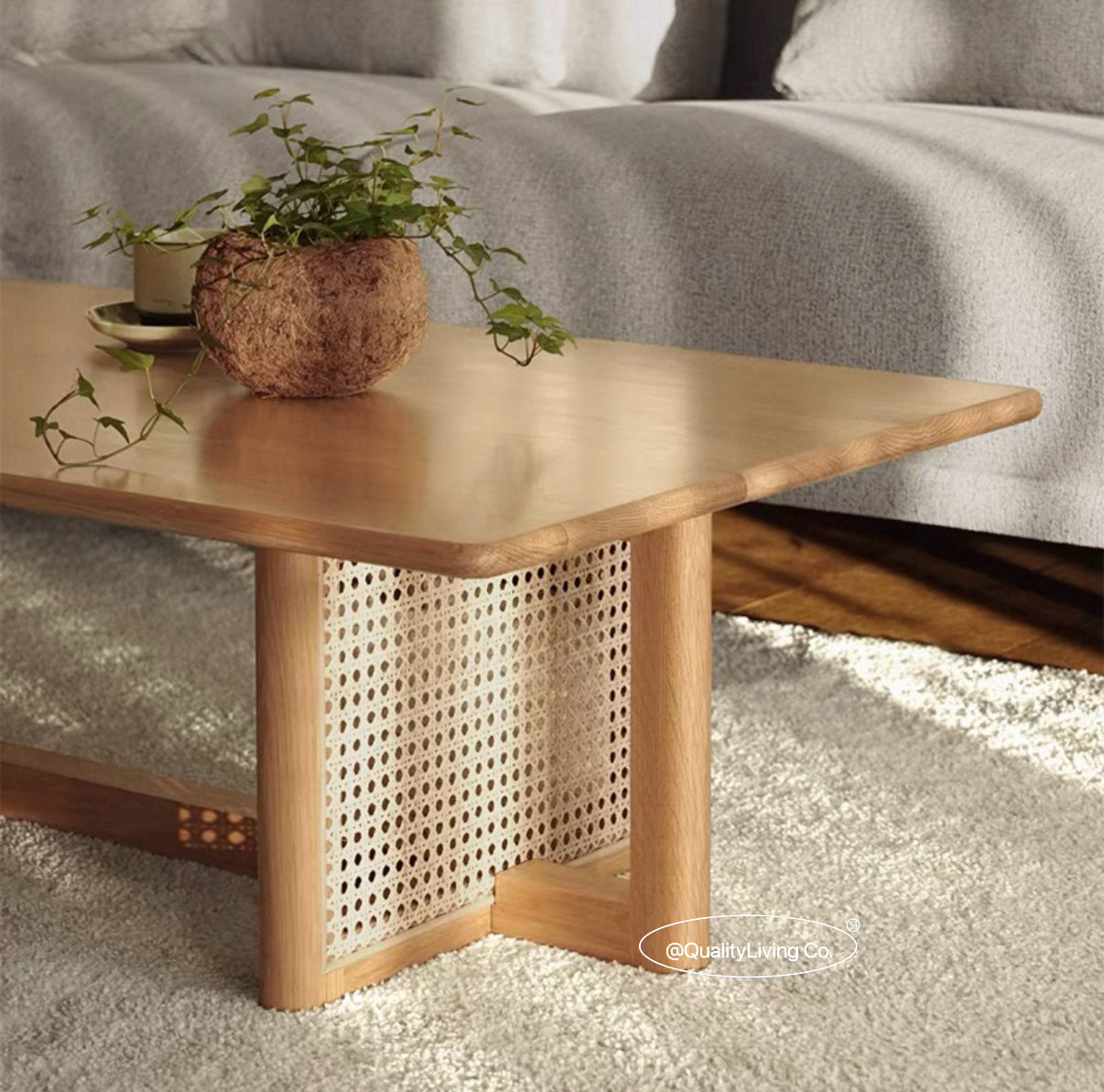特點:選用北美進口白蠟木製作。這款茶几擁有藤織設計,融合了自然與簡約的風格。白蠟木的質感優越,而藤織元素則增添了獨特的觸感。這個茶几不僅外觀精美,還提供了實用的桌面,為您的客廳營造出和諧的氛圍。