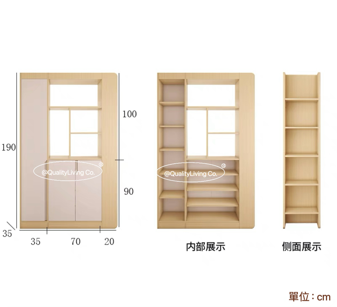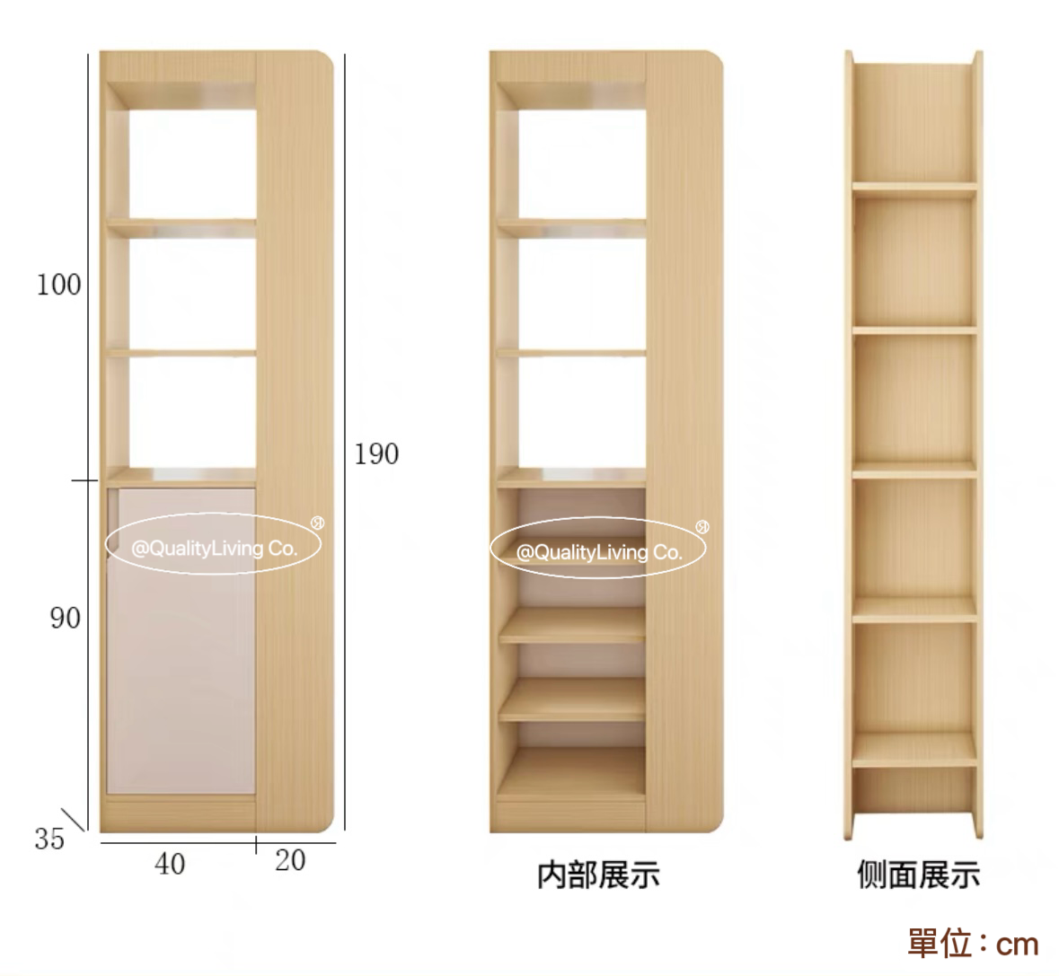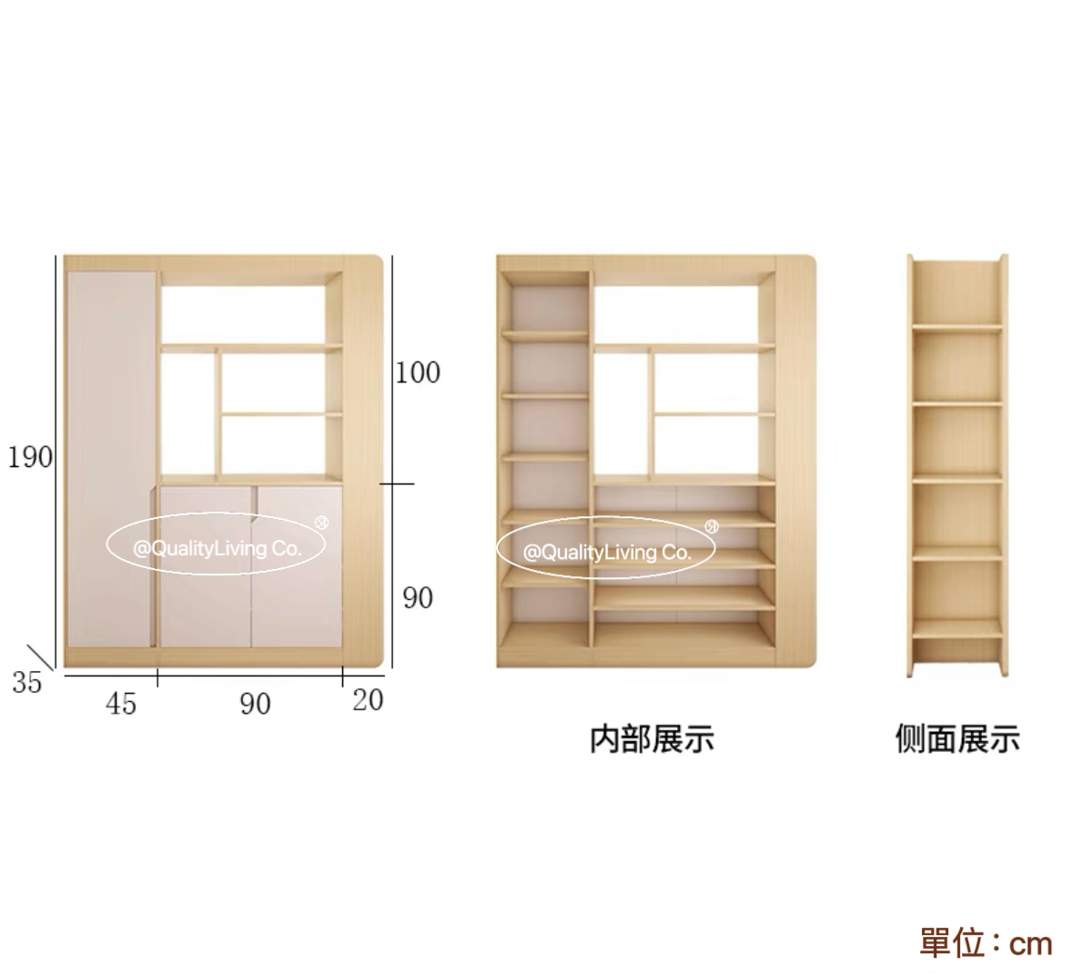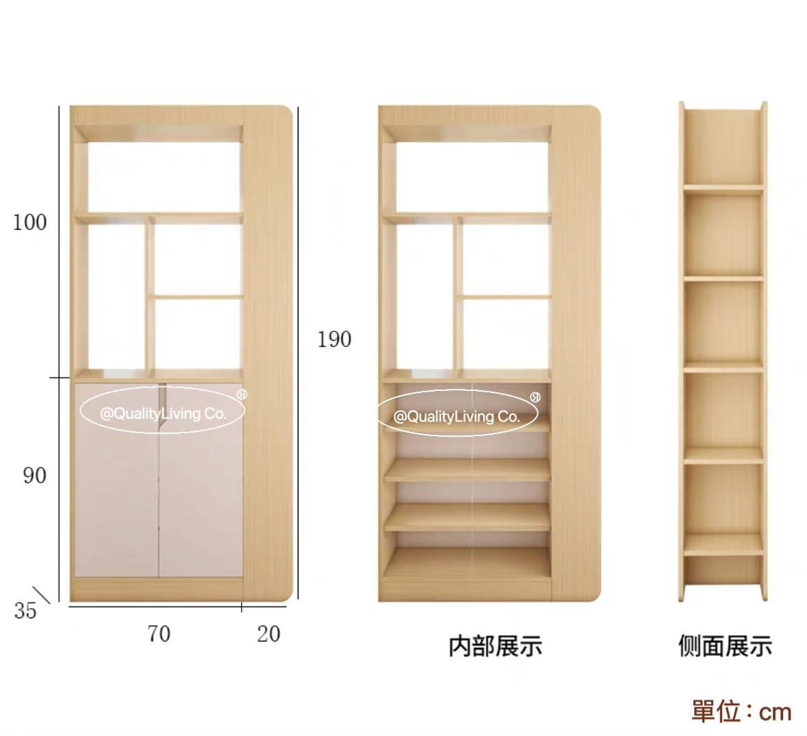 - 櫃體使用實木板材,經久耐用。