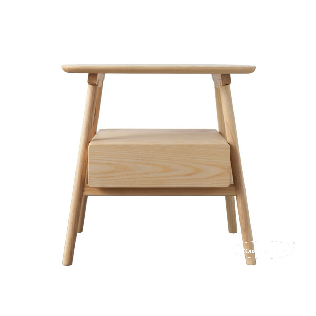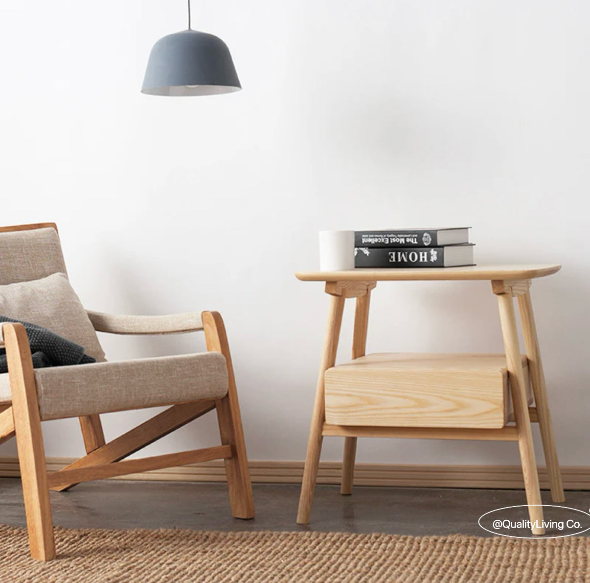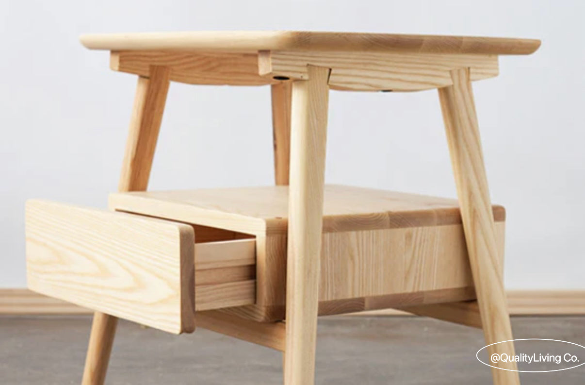 特點:選用北美進口白蠟木製作。這款床邊茶几同時作為收納邊櫃,兼具實用性與優雅感。白蠟木的質地展現了溫暖的自然美,並提供便捷的收納空間,使家中能整潔有序。