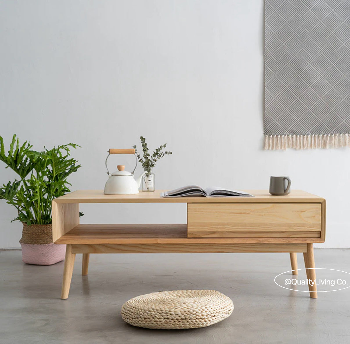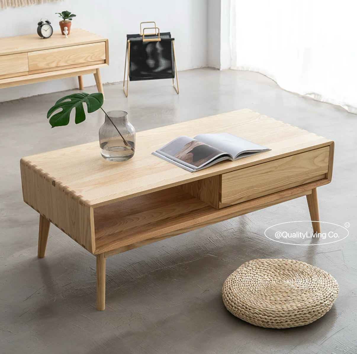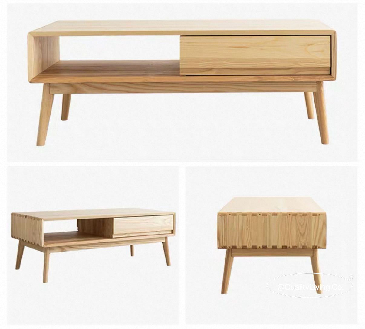 特點:選用北美進口白蠟木製作。這款茶几擁有獨特而實用的設計。它配備了抽屜,為您提供儲物空間,方便放置小物件和雜誌。此外,抽屜邊緣設計有半開放式的格子收納空間,可用於擺放裝飾品、杯子或其他常用物品。這款茶几不僅具備實用性,還展現了白蠟木的溫暖色調和自然美感,為您的客廳增添了風格與功能。