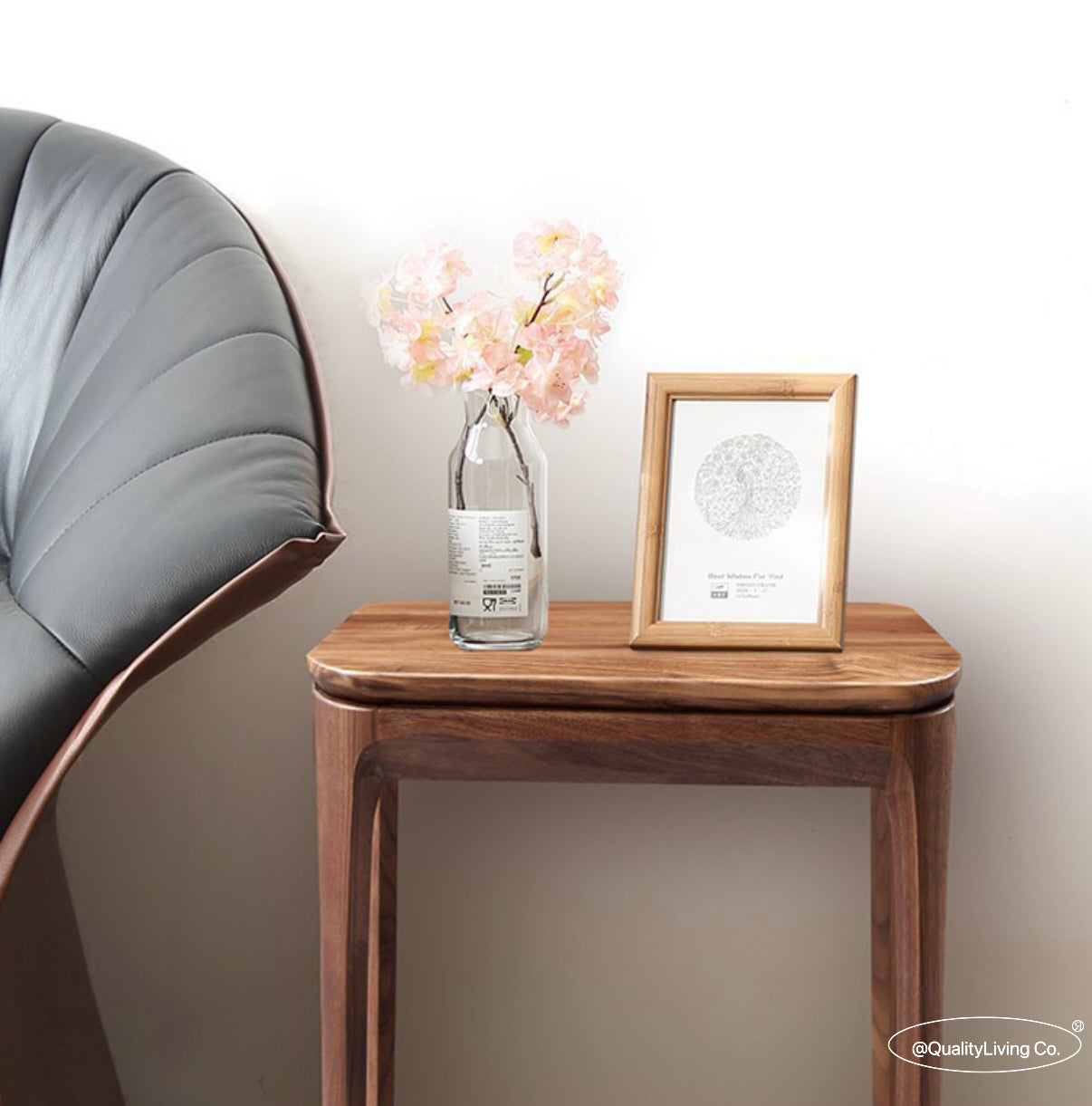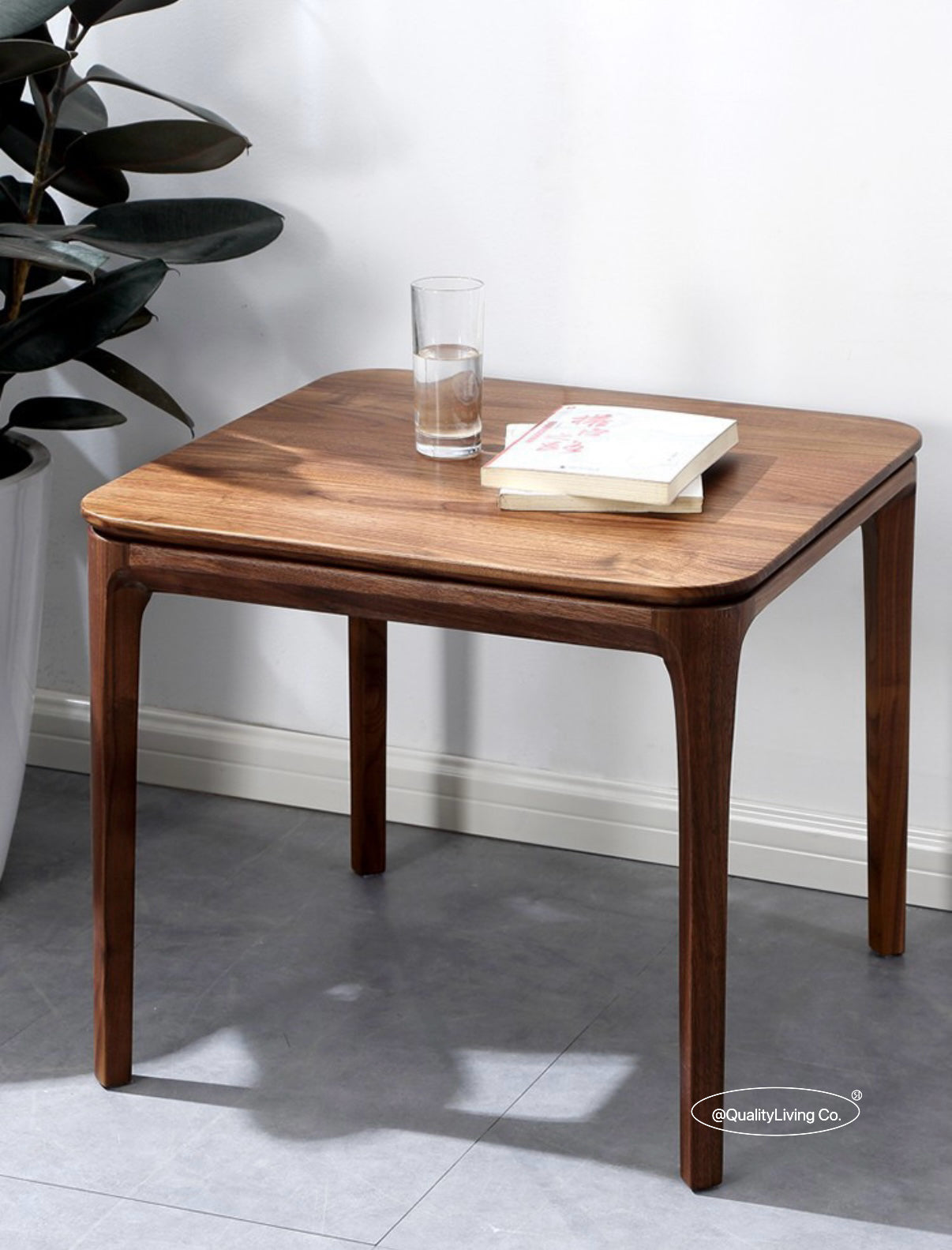 特點:選用北美進口黑胡桃木為材。這款咖啡桌擁有獨特的圓角設計,同時融合了四方桌的風格特徵。其設計既溫暖又現代,能為您的空間增添美感與實用性。
