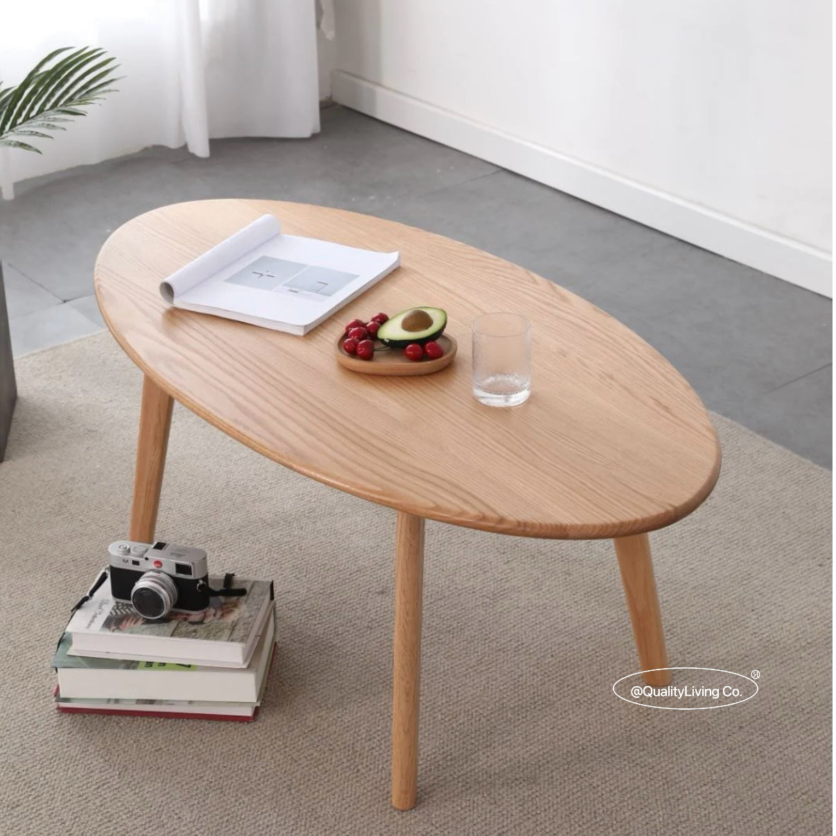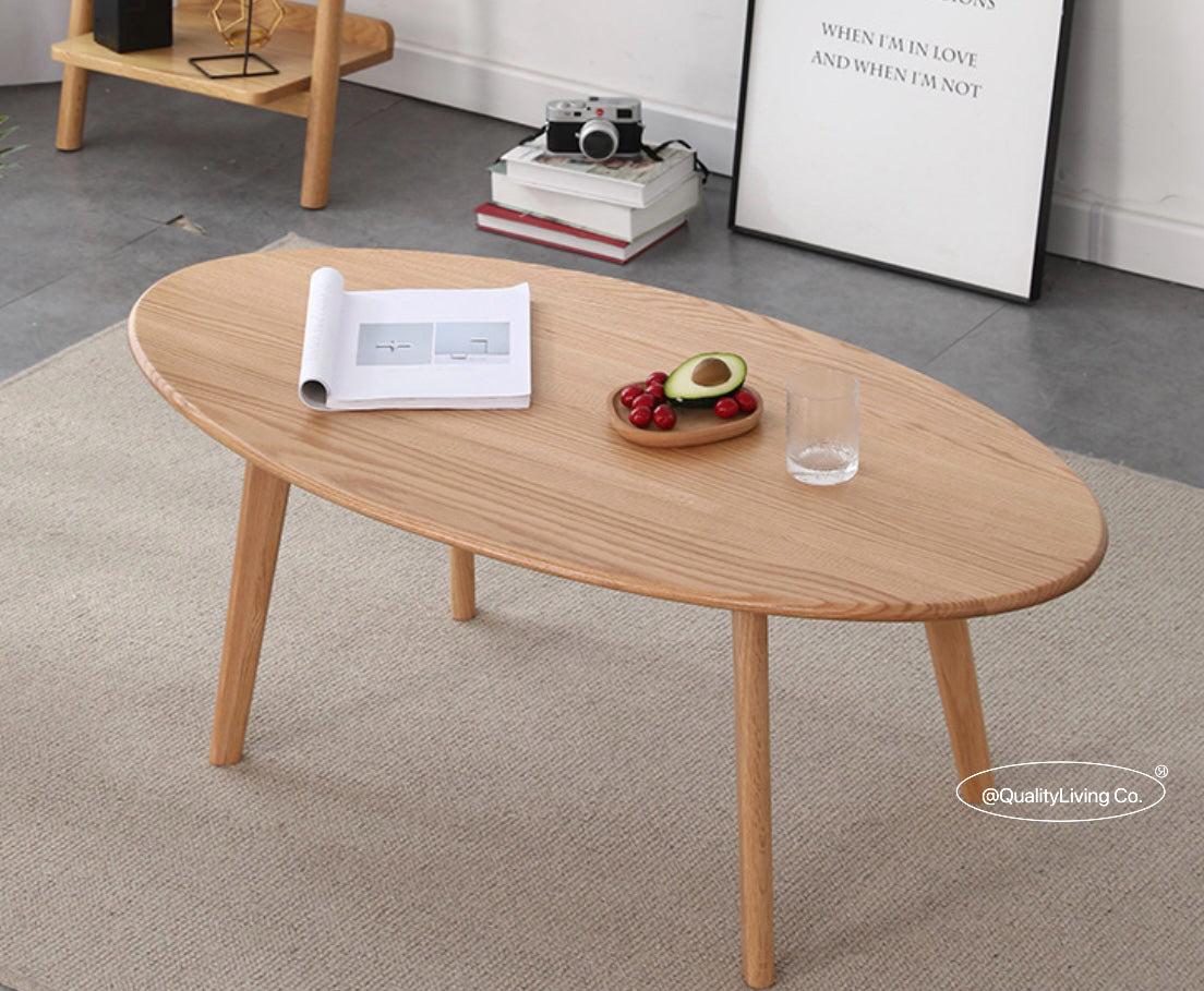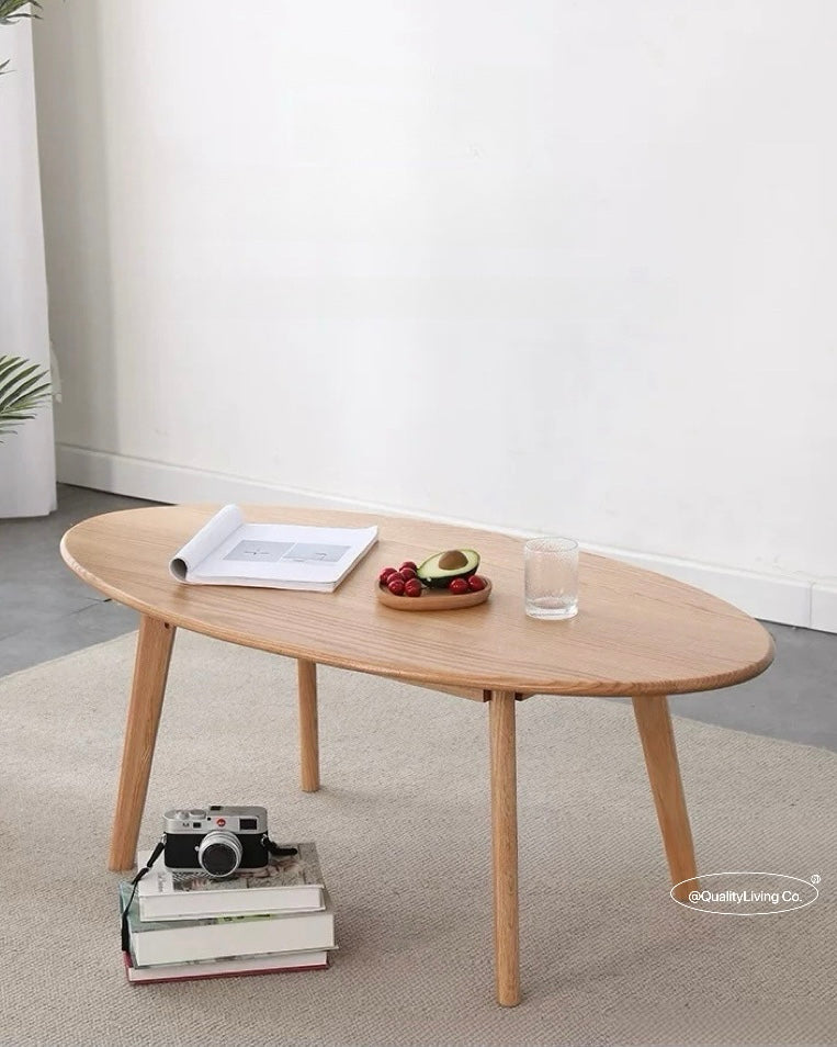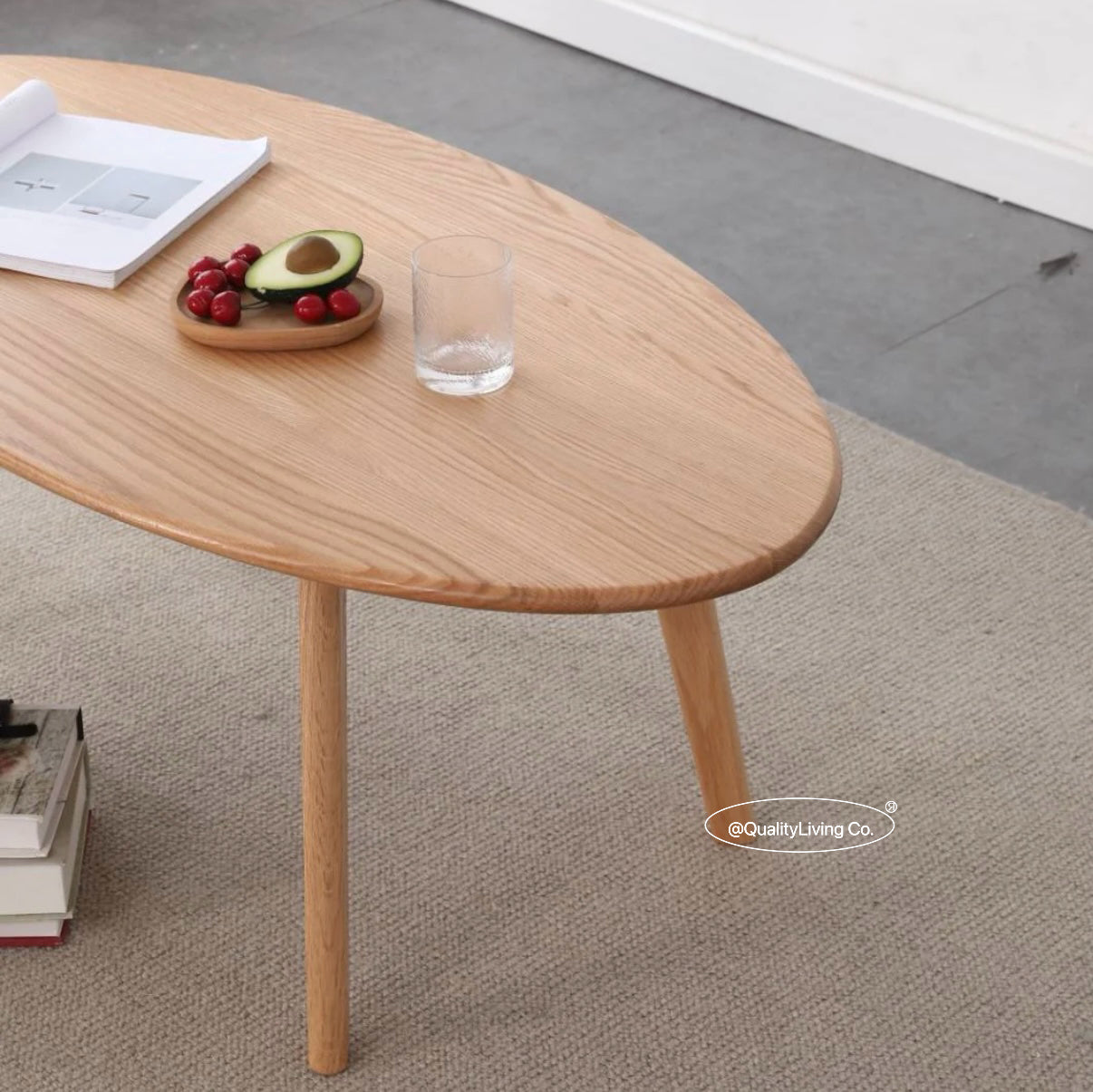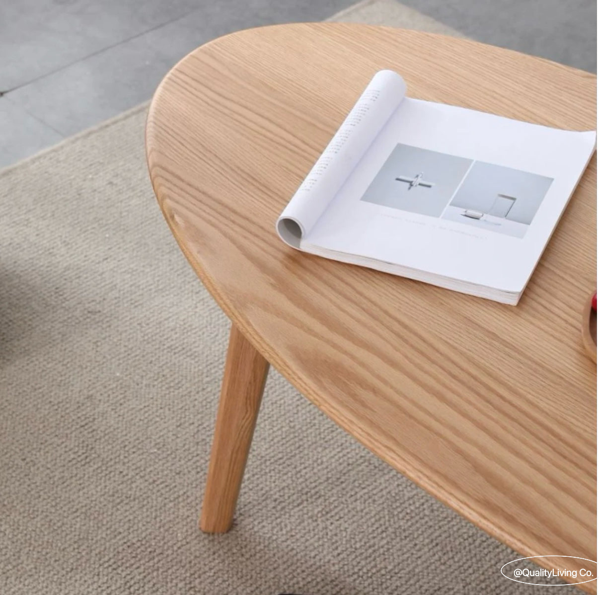 特點:選用北美進口紅橡木製作。這款橢圓形茶几採用圓角設計,增強了家居的安全性。優雅的線條結合高品質木材,展現出簡約而時尚的風格,適合各種室內裝潢。