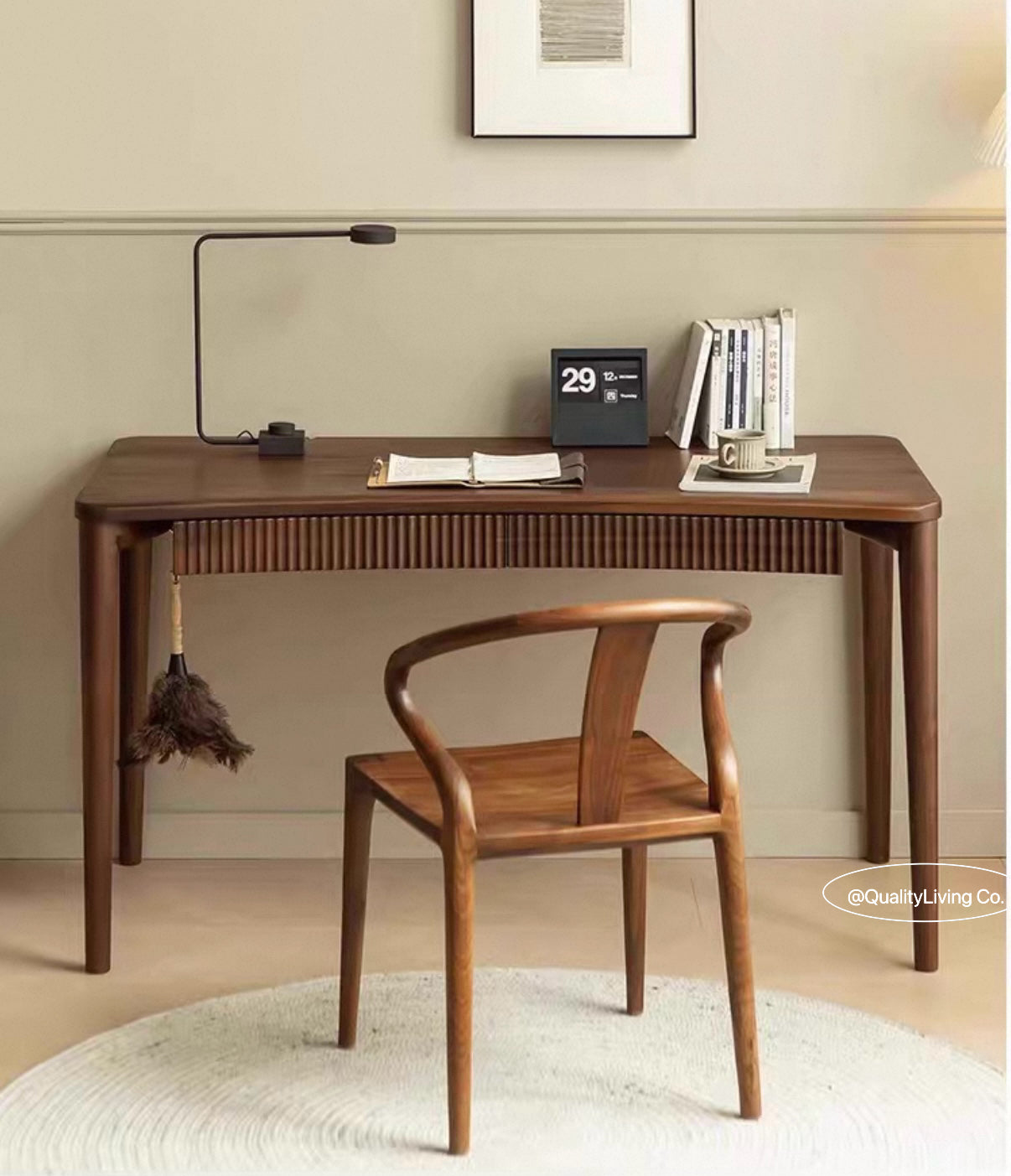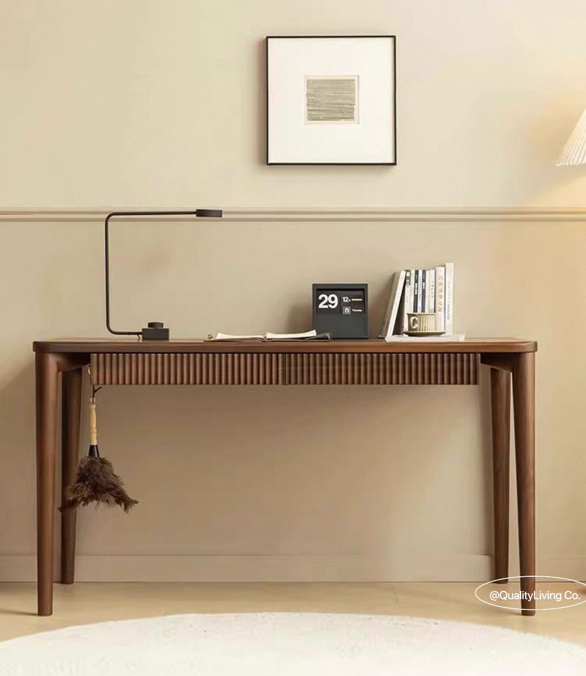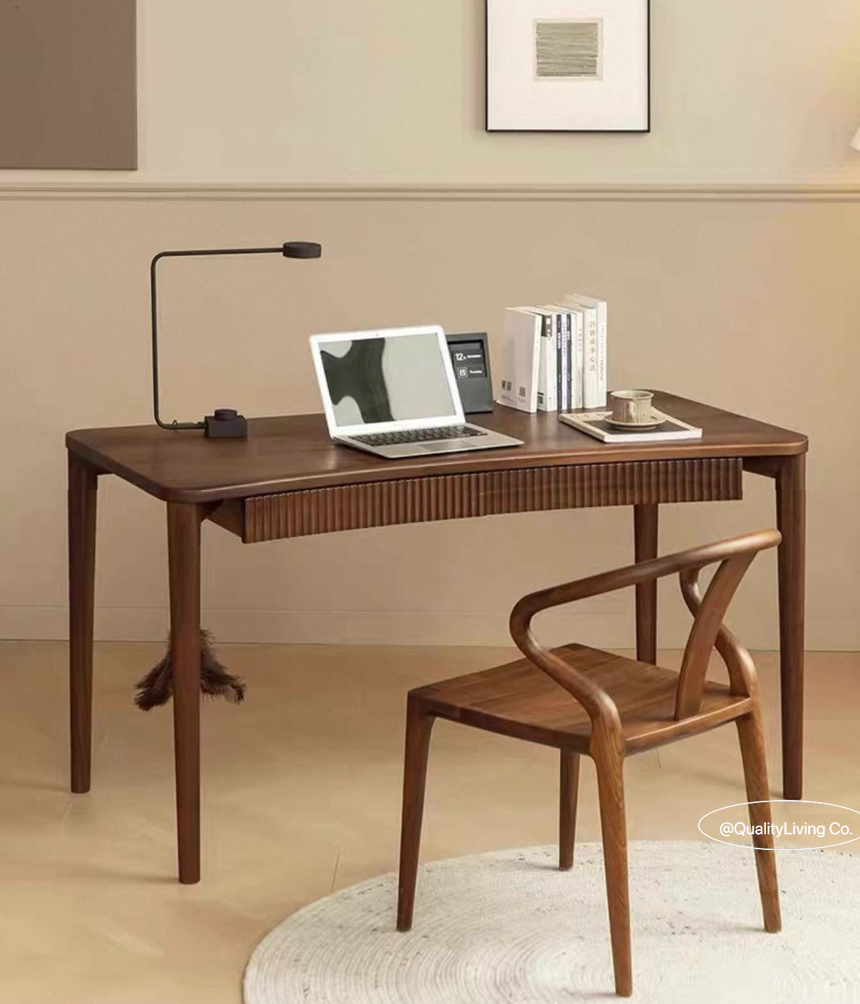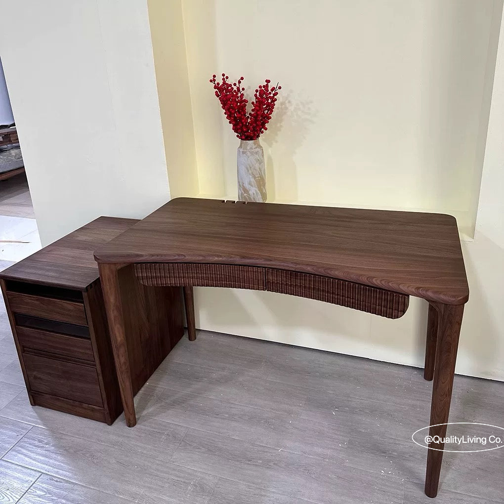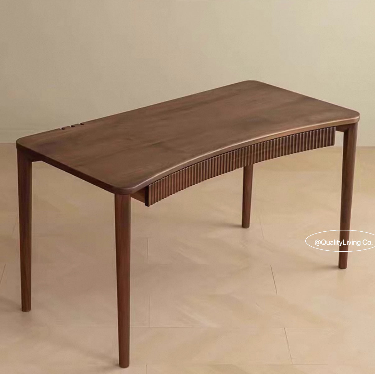 特點:選用北美進口黑胡桃木製作。這款書檯採用弧形設計,櫃桶巧妙懸掛於檯前,增添了空間的流暢感。背後設有空櫃桶,方便整理電線,營造出一個整潔舒適的工作環境。精緻的設計與實用性相得益彰,為您的工作提供愉悅的體驗。