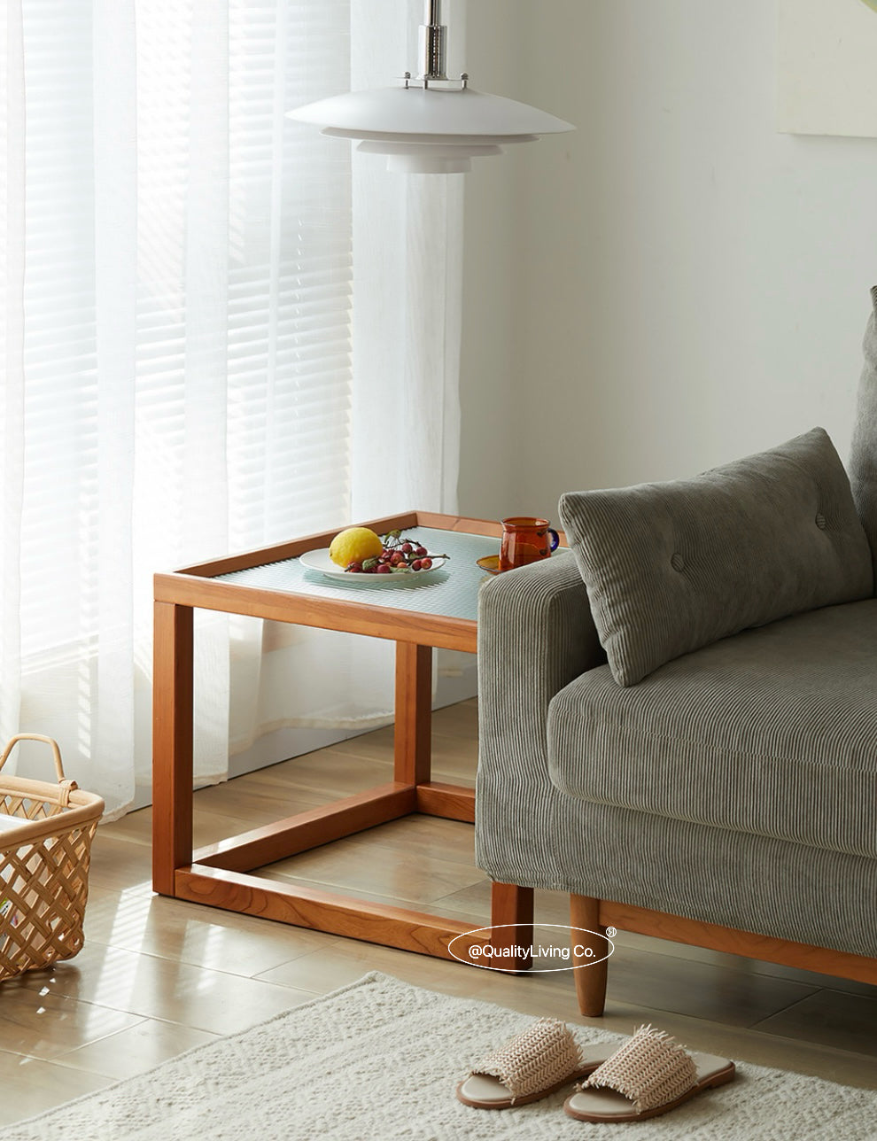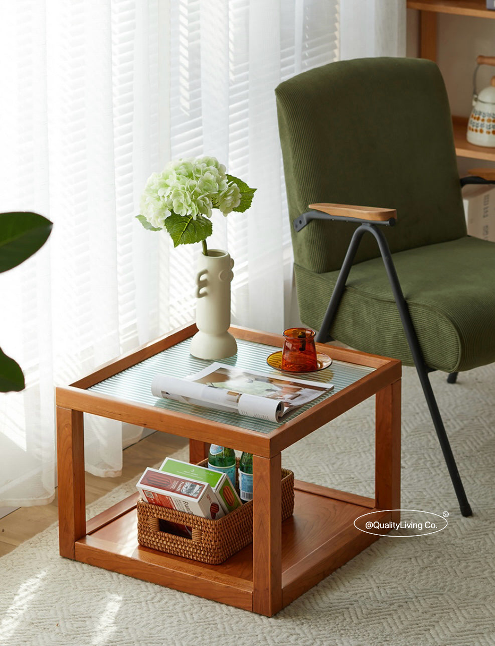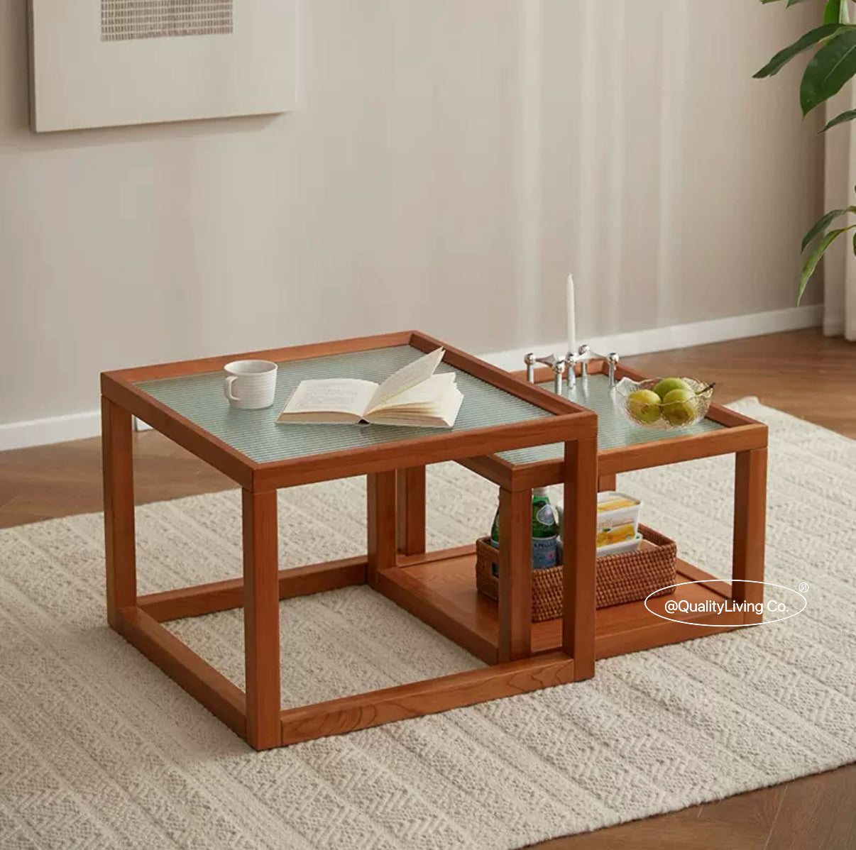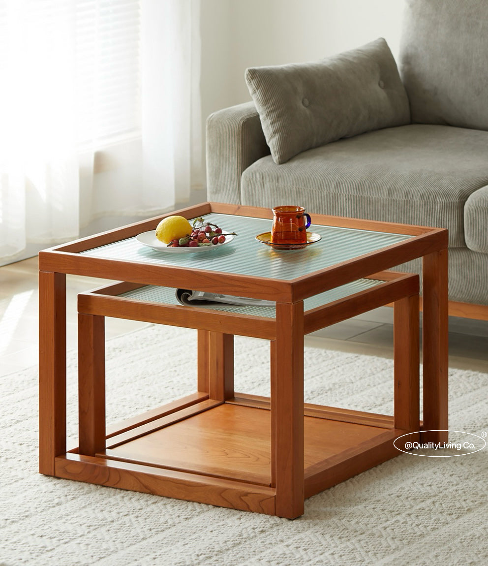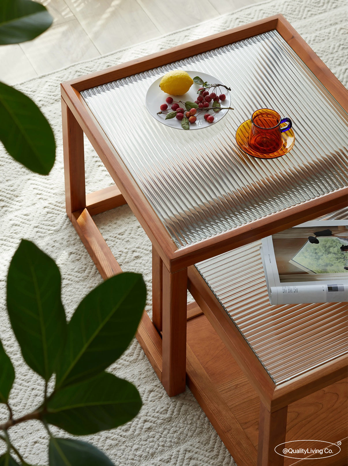 特點:採用北美進口櫻桃木製作。這款櫻桃木玻璃茶几是現代風格的理想選擇。其櫻桃木框架質感出眾,搭配透明的玻璃桌面,增添了輕盈感,營造出開放的空間氛圍。這款茶几既典雅又時尚,為客廳帶來自然與現代的完美融合。