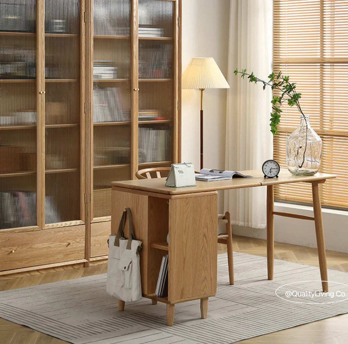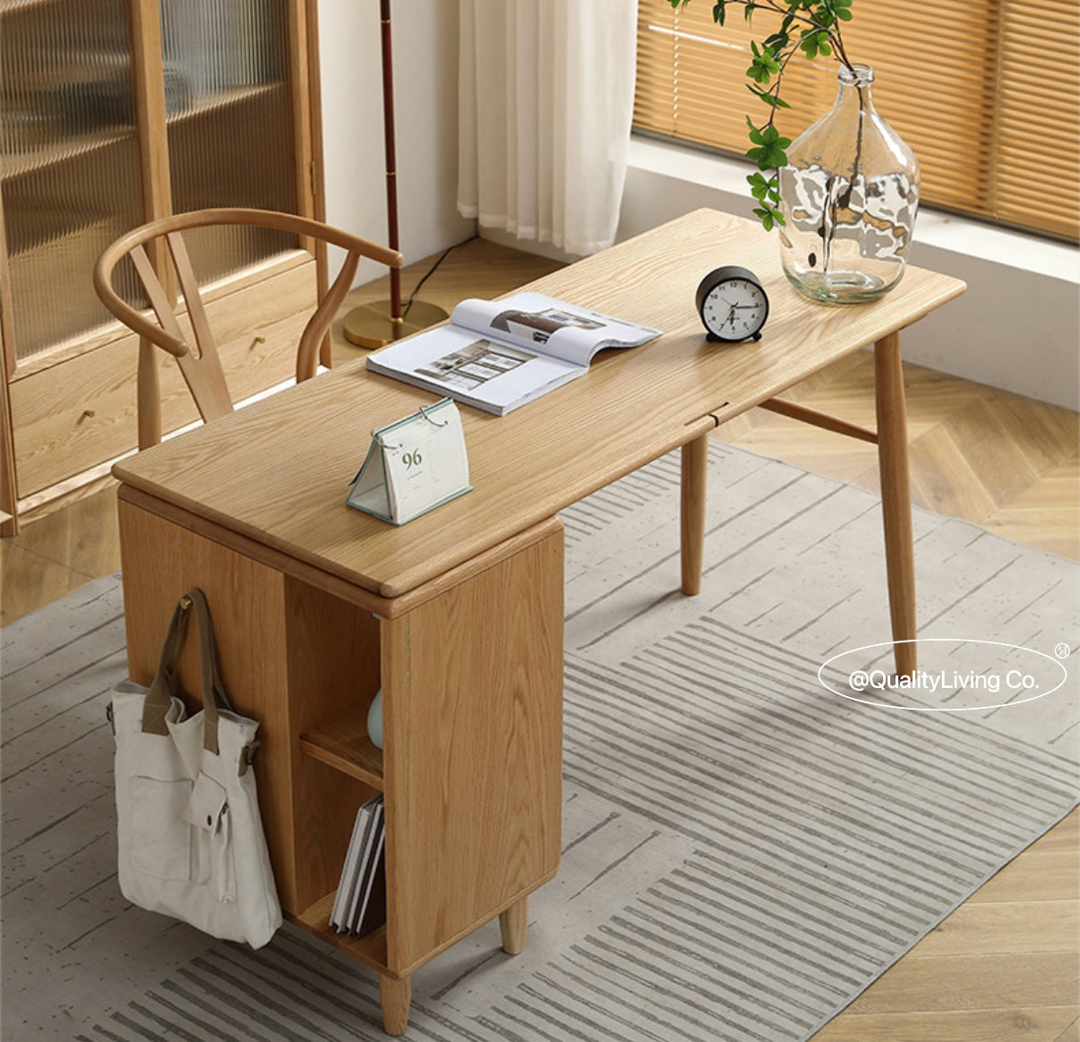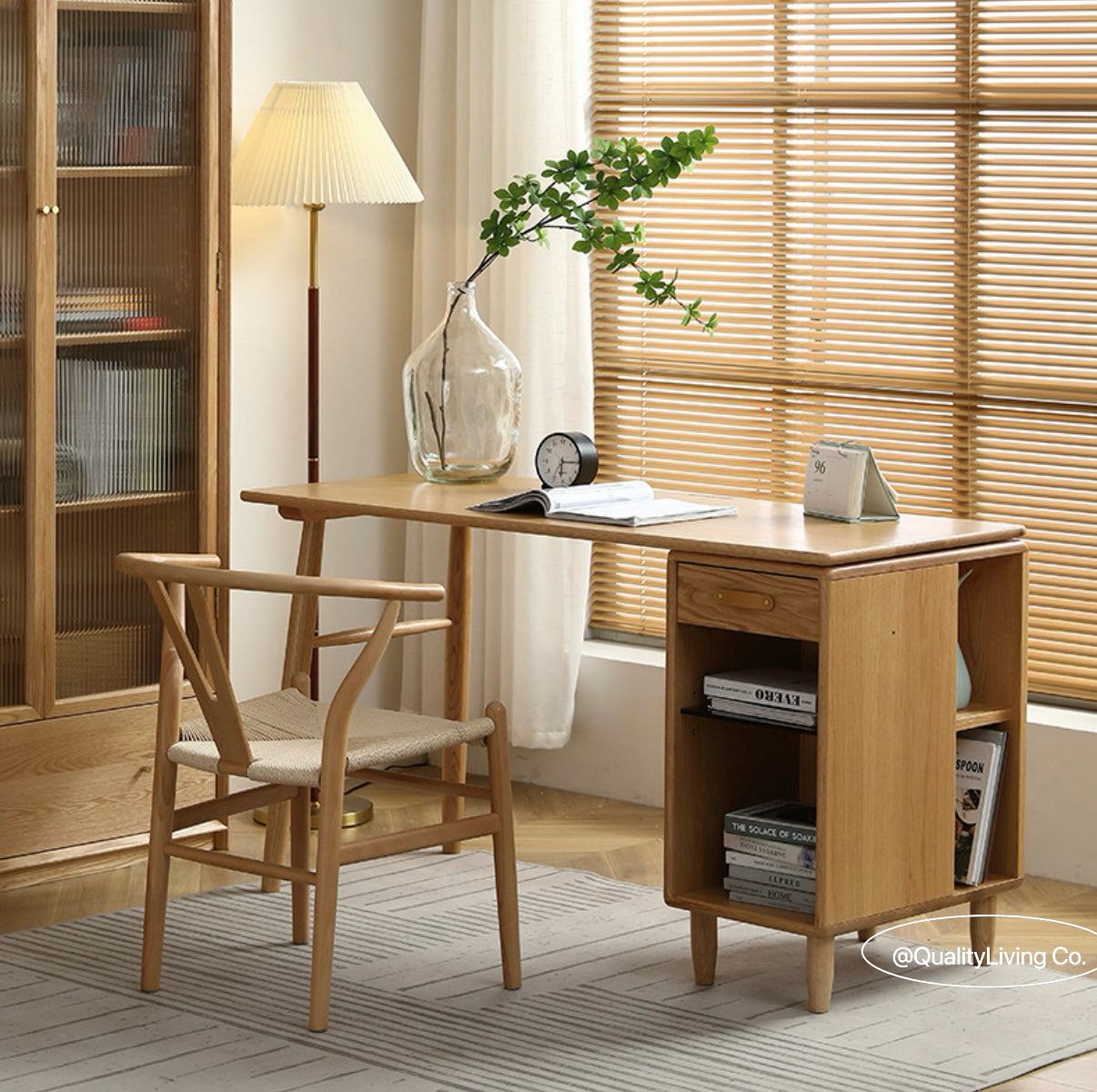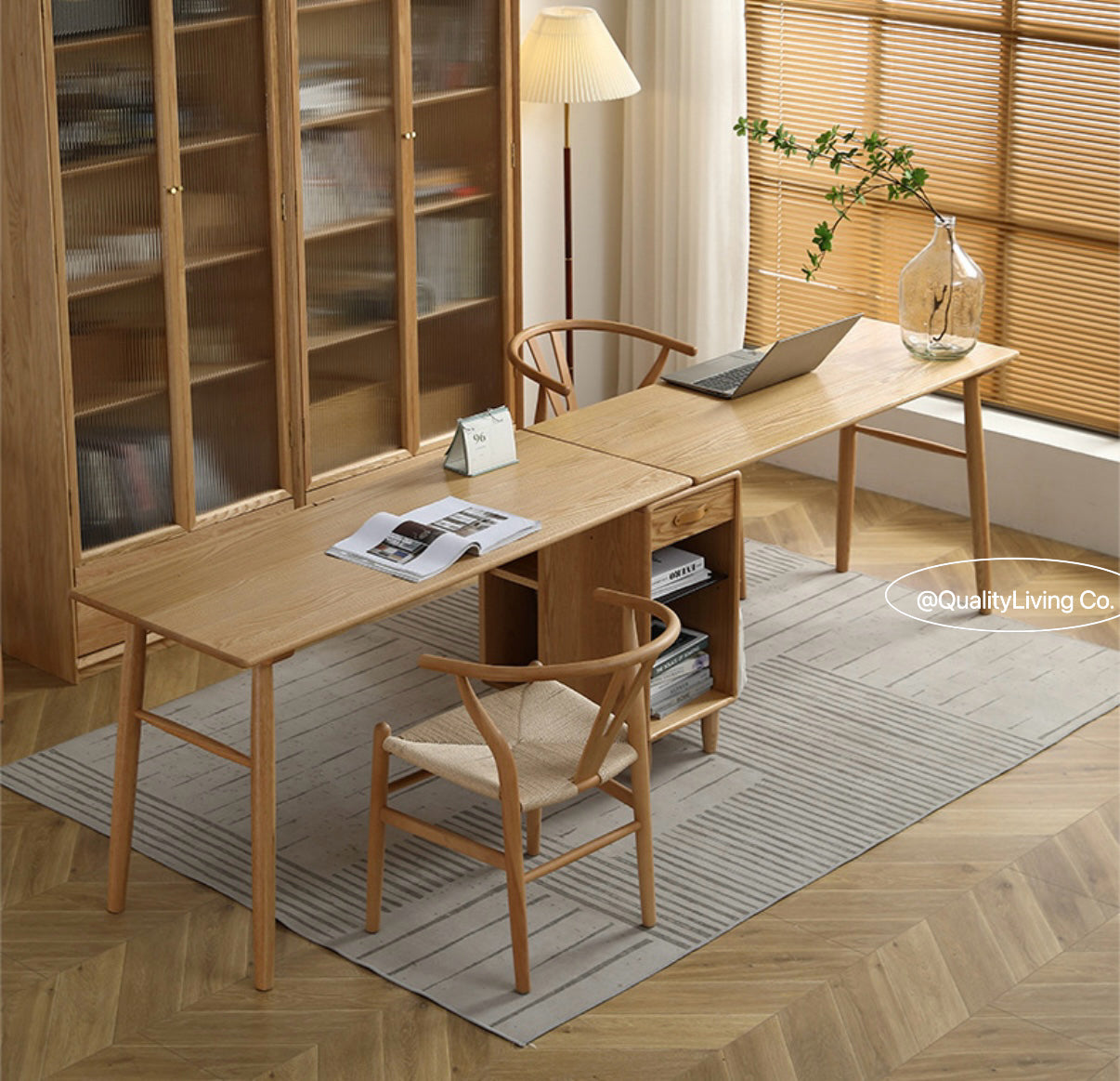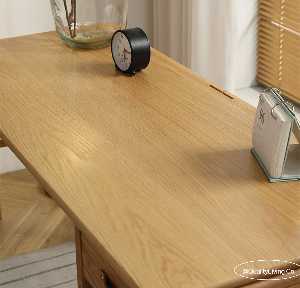 特點:選用北美進口紅橡木製作。這款實木書檯是多功能設計的理想之選。它配備了可左右安裝的抽屜櫃,方便您根據需求調整配置。圓角處理確保了安全和舒適的使用體驗,而復古風格的抽屜把手則為整體增添了一絲時尚感。