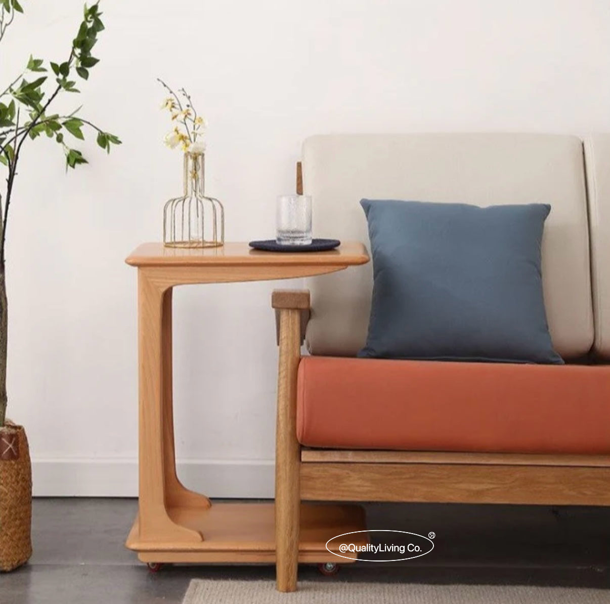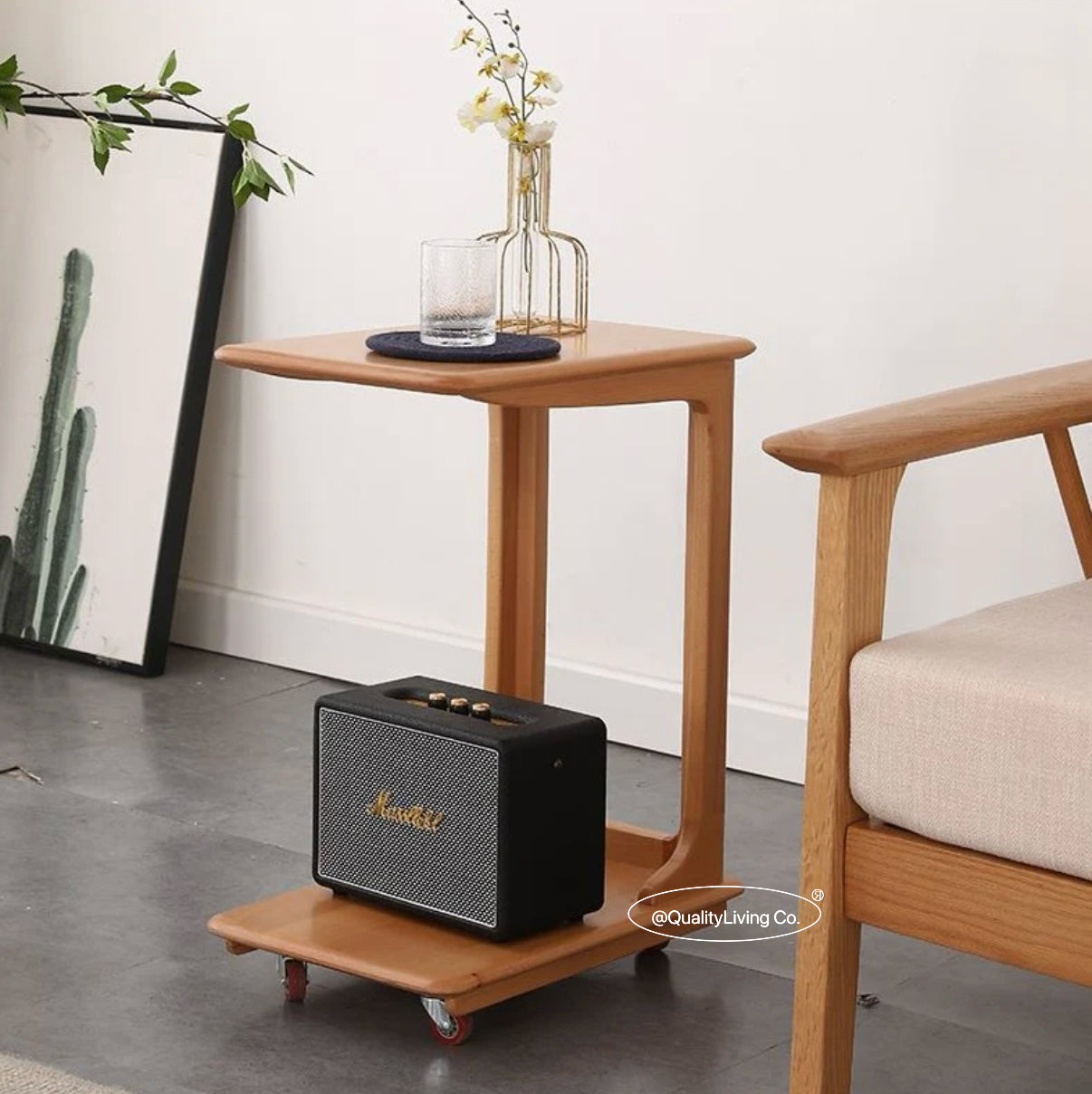 特點:選用北美進口紅橡木製作。這款帶有輪子的活動茶几擁有簡約時尚的設計,四個輪子使其輕鬆移動到梳化旁或任何角落。無論是與家人和朋友聚會,還是獨自品茶閱讀,均能為您提供舒適的體驗。多功能的邊幾設計,方便擺放飲品或書籍。