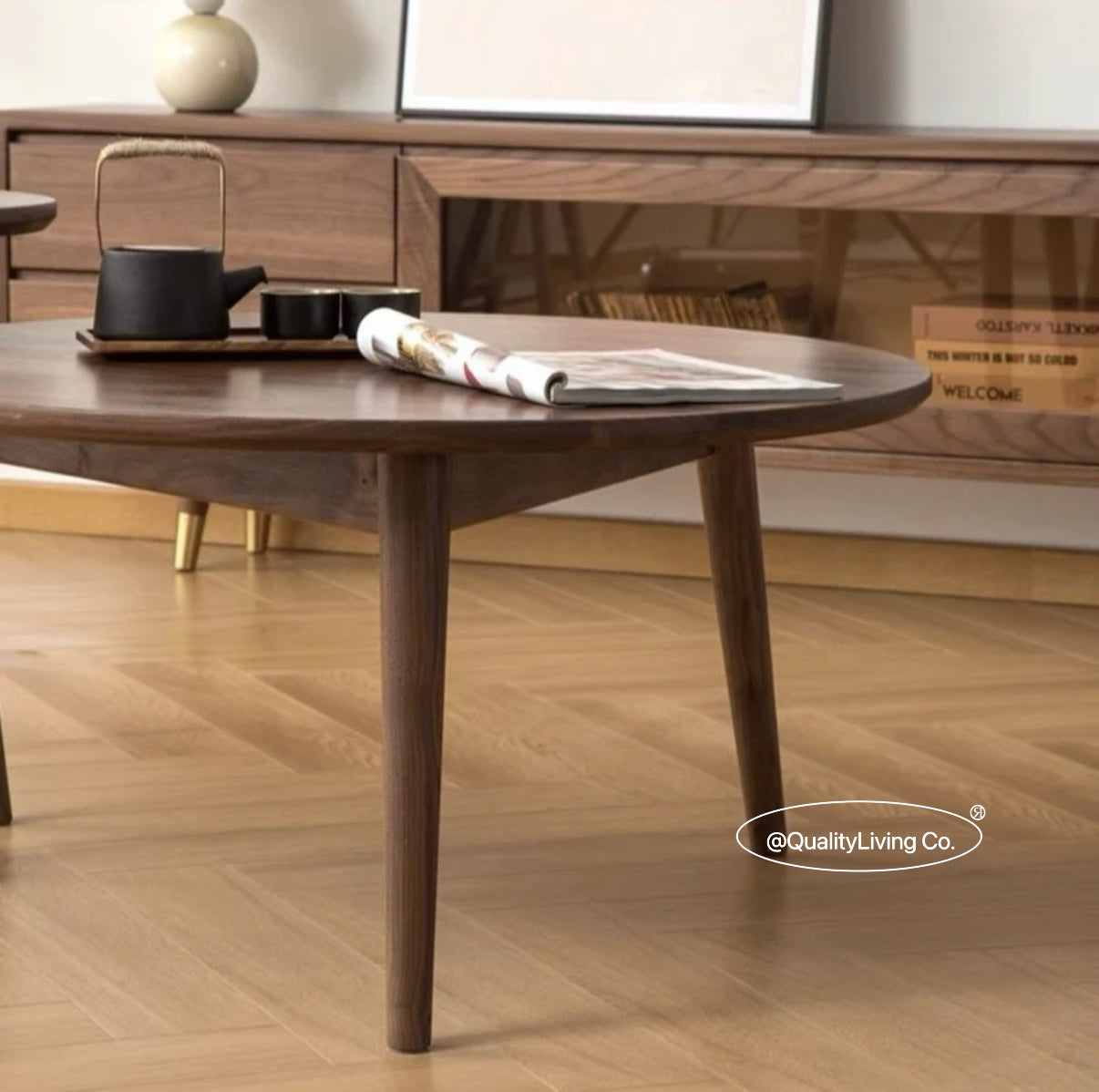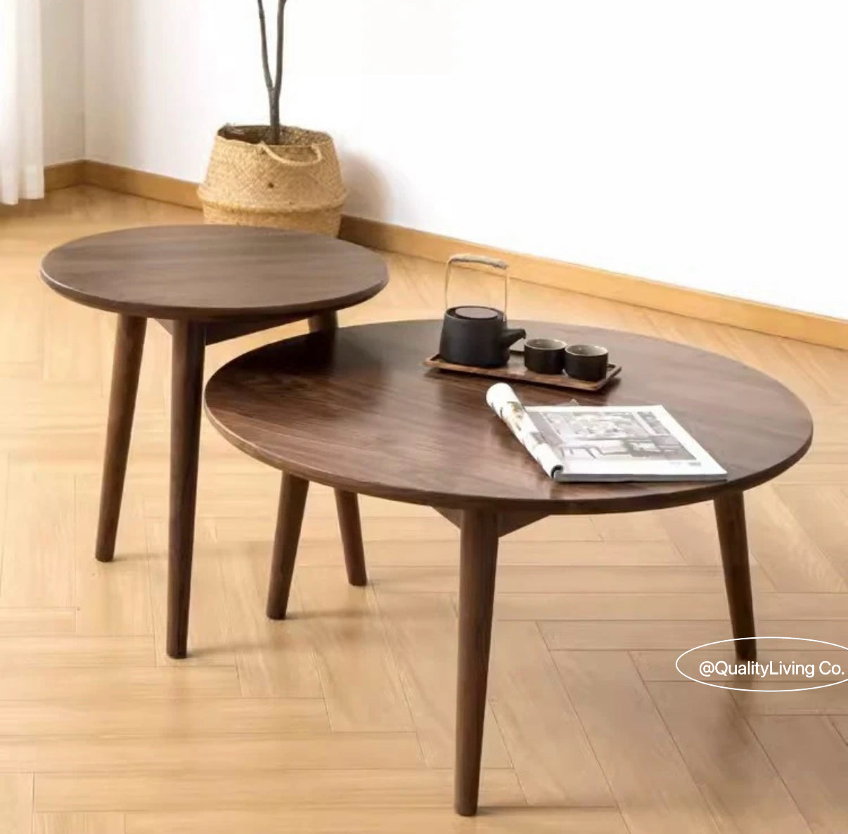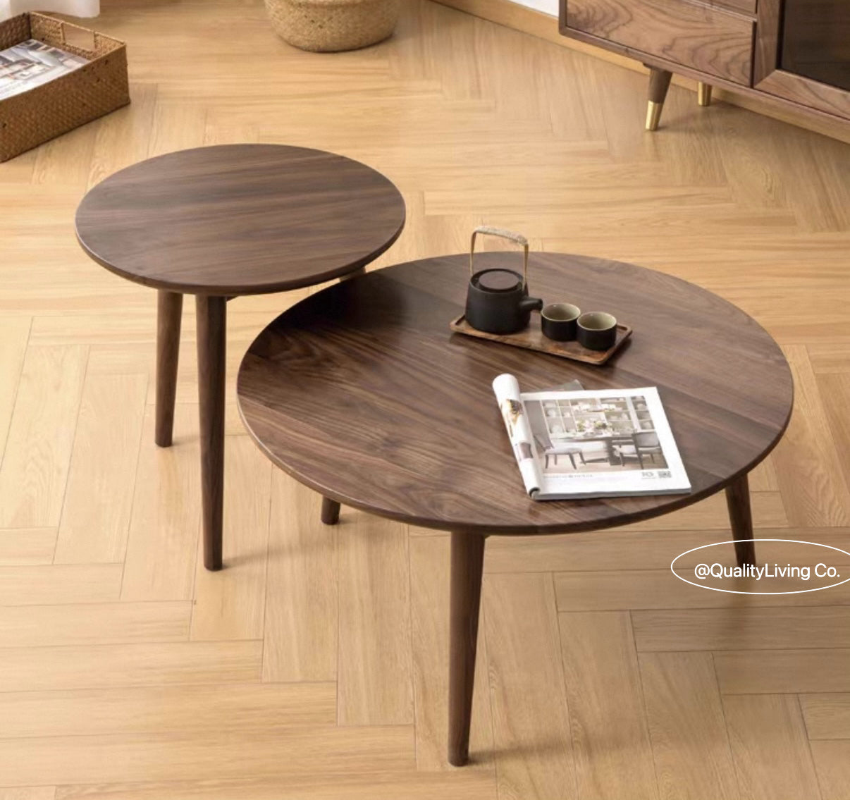 特點:選用北美進口黑胡桃木製作。這款茶几組合具備典雅的設計,寬度有0.8米和0.5米兩種選擇,非常適合現代家居環境。其簡約風格結合實用性,能為您的起居室增添時尚與舒適的氛圍。