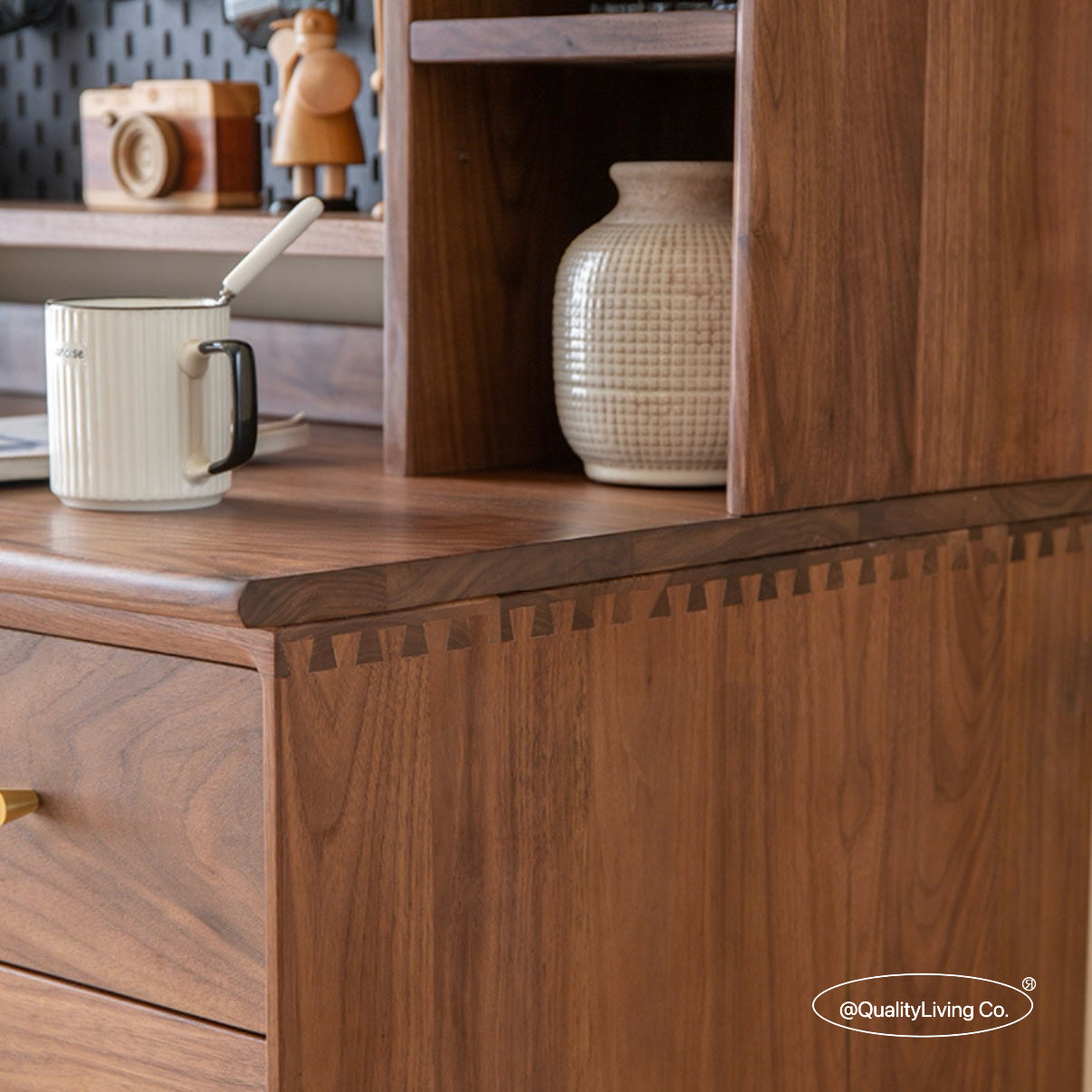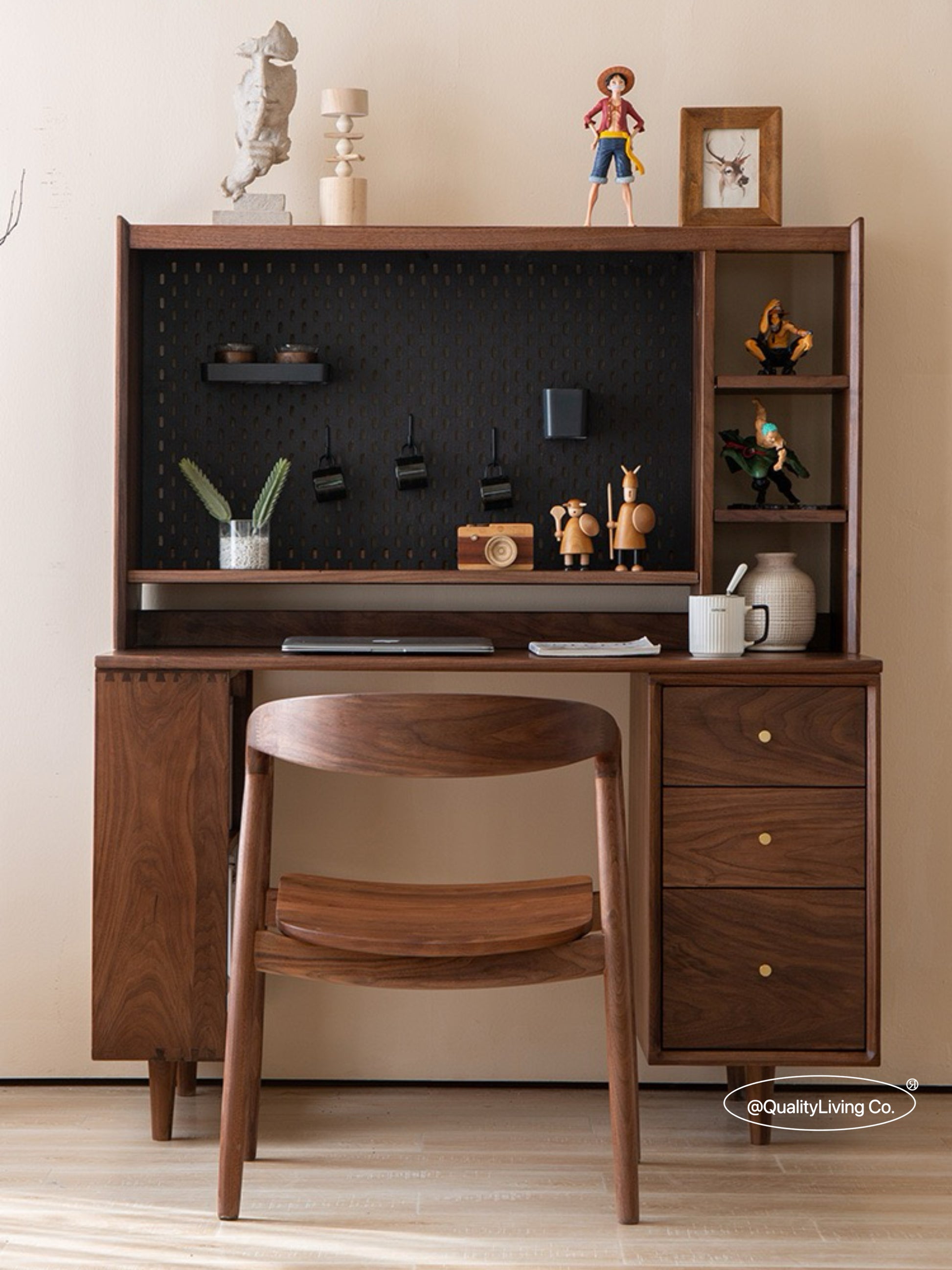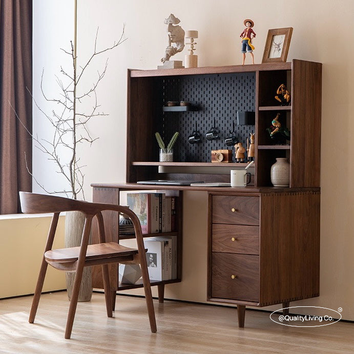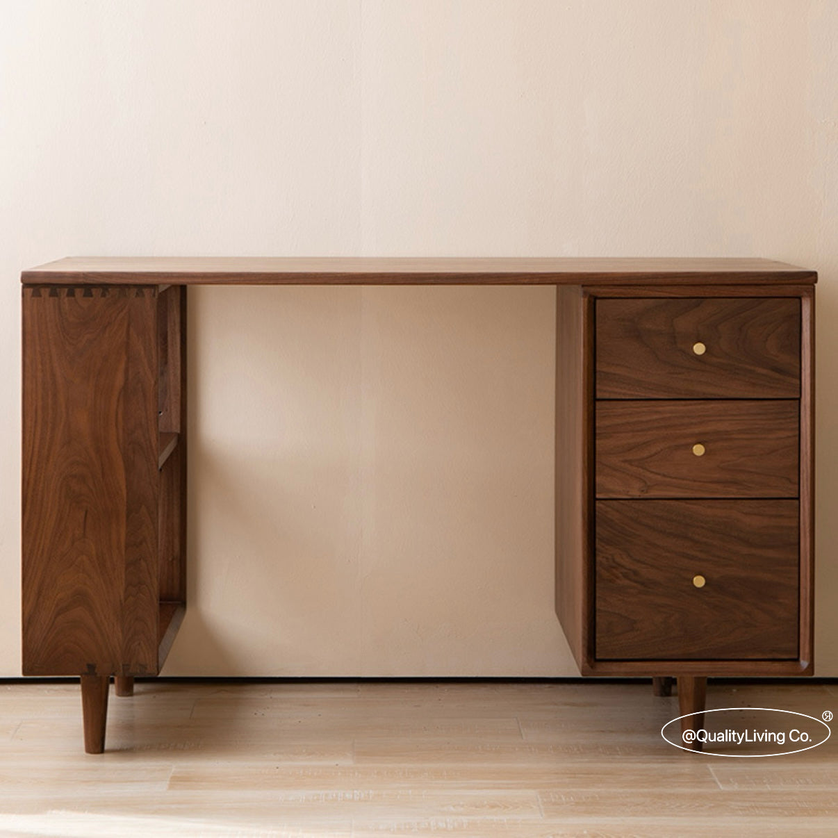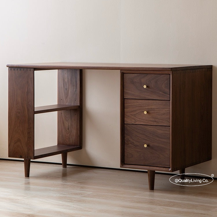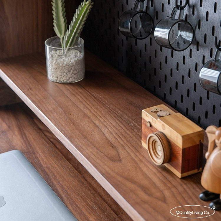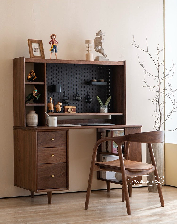 特點:選用北美進口黑胡桃木製作。款書檯與櫃桶的設計結合了實用性和收納功能,完美滿足您的辦公需求。您可以展示擺設,並整理書籍和雜物,從而提升工作效率。它兼具實用性與功能性,為您的工作空間帶來更多便利。
