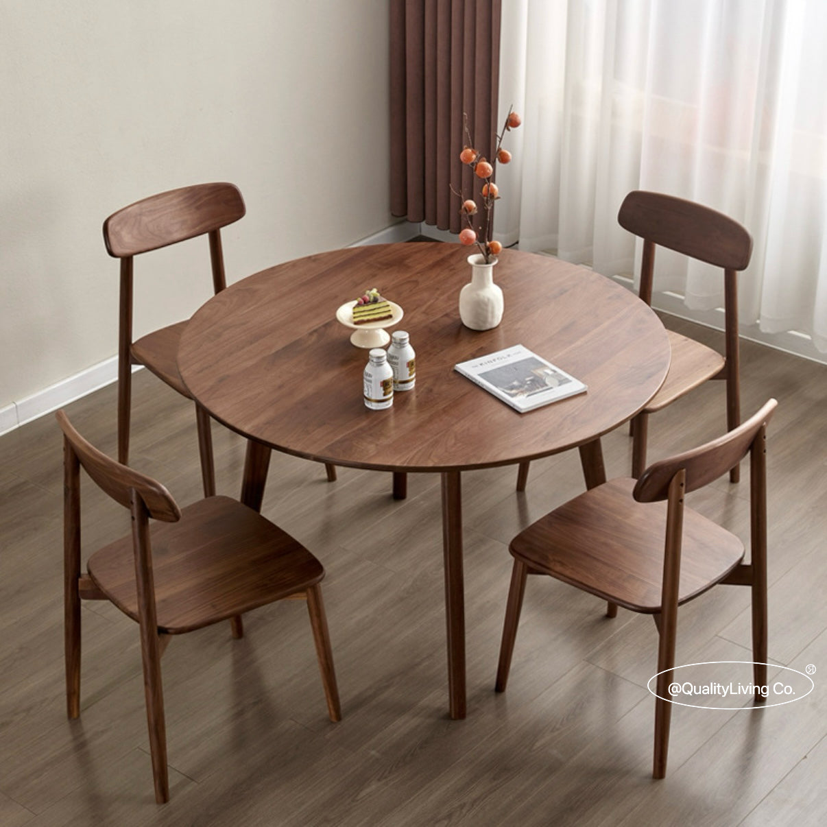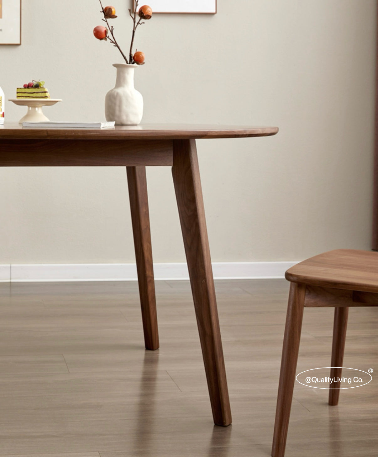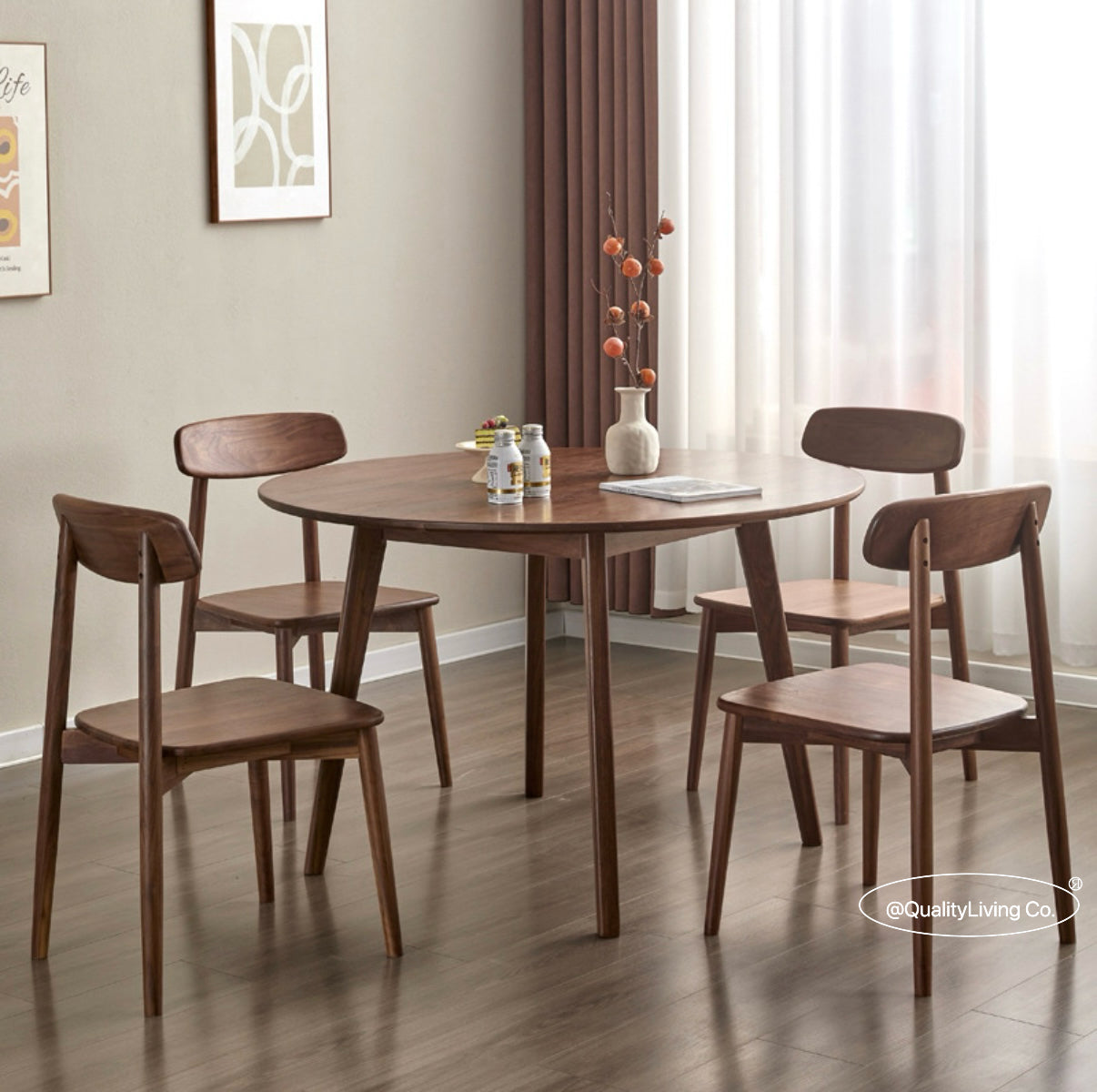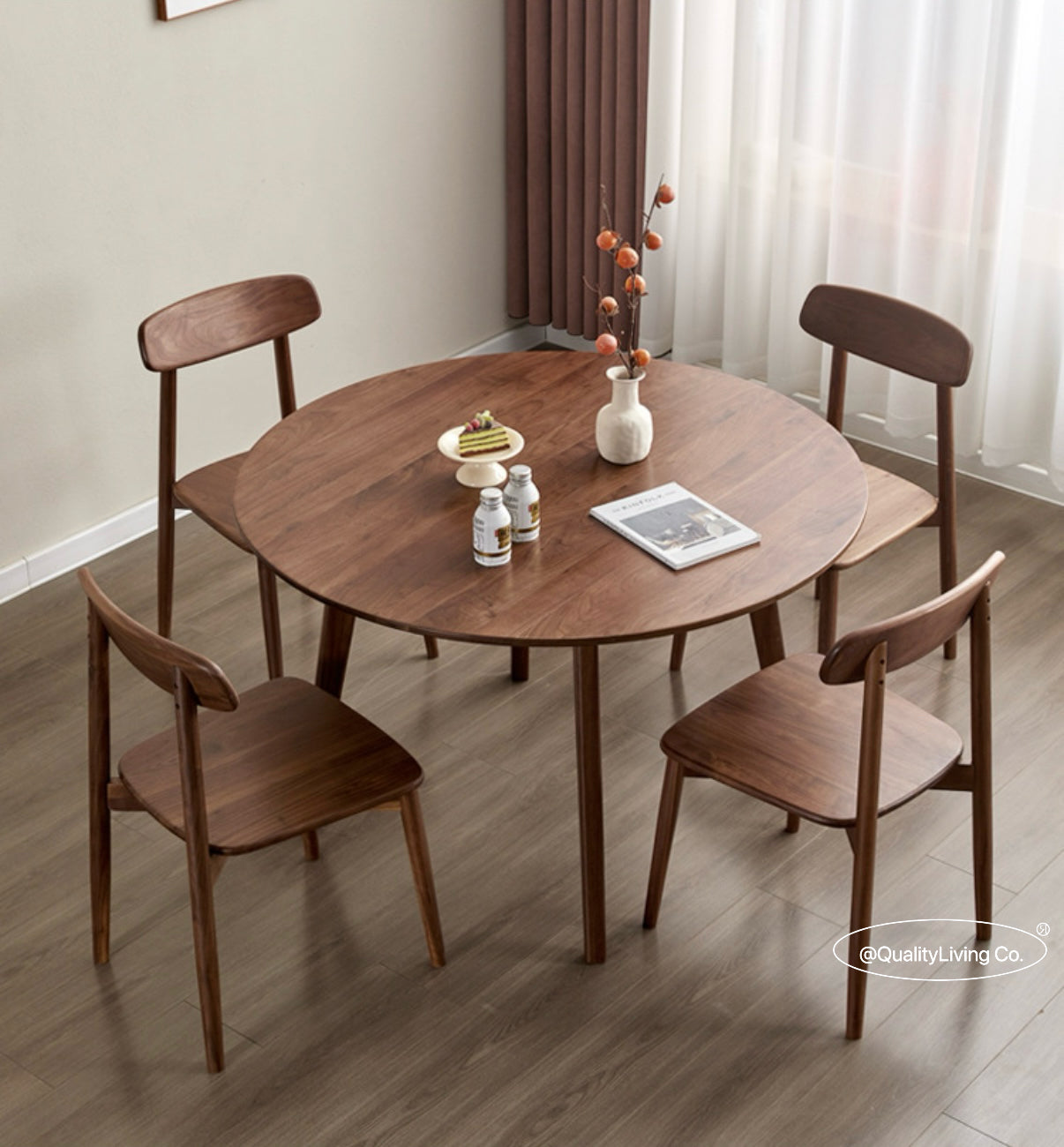 特點:選用北美進口黑胡桃木,這款圓餐桌適合4-6人使用。簡約設計與自然木紋相得益彰,為客廳增添溫暖氛圍。穩固的結構和光滑的桌面易於清潔,是家庭聚餐和日常使用的理想選擇。
